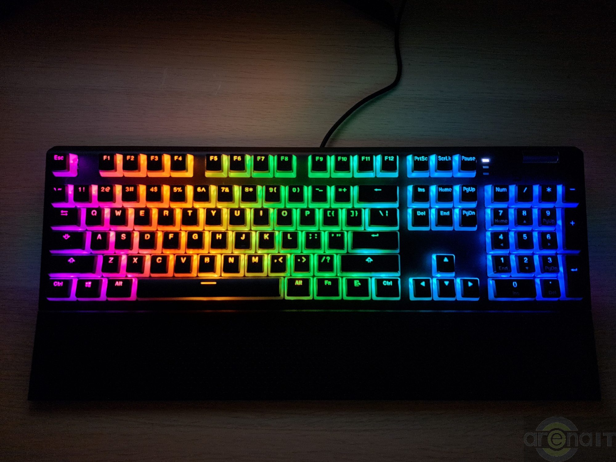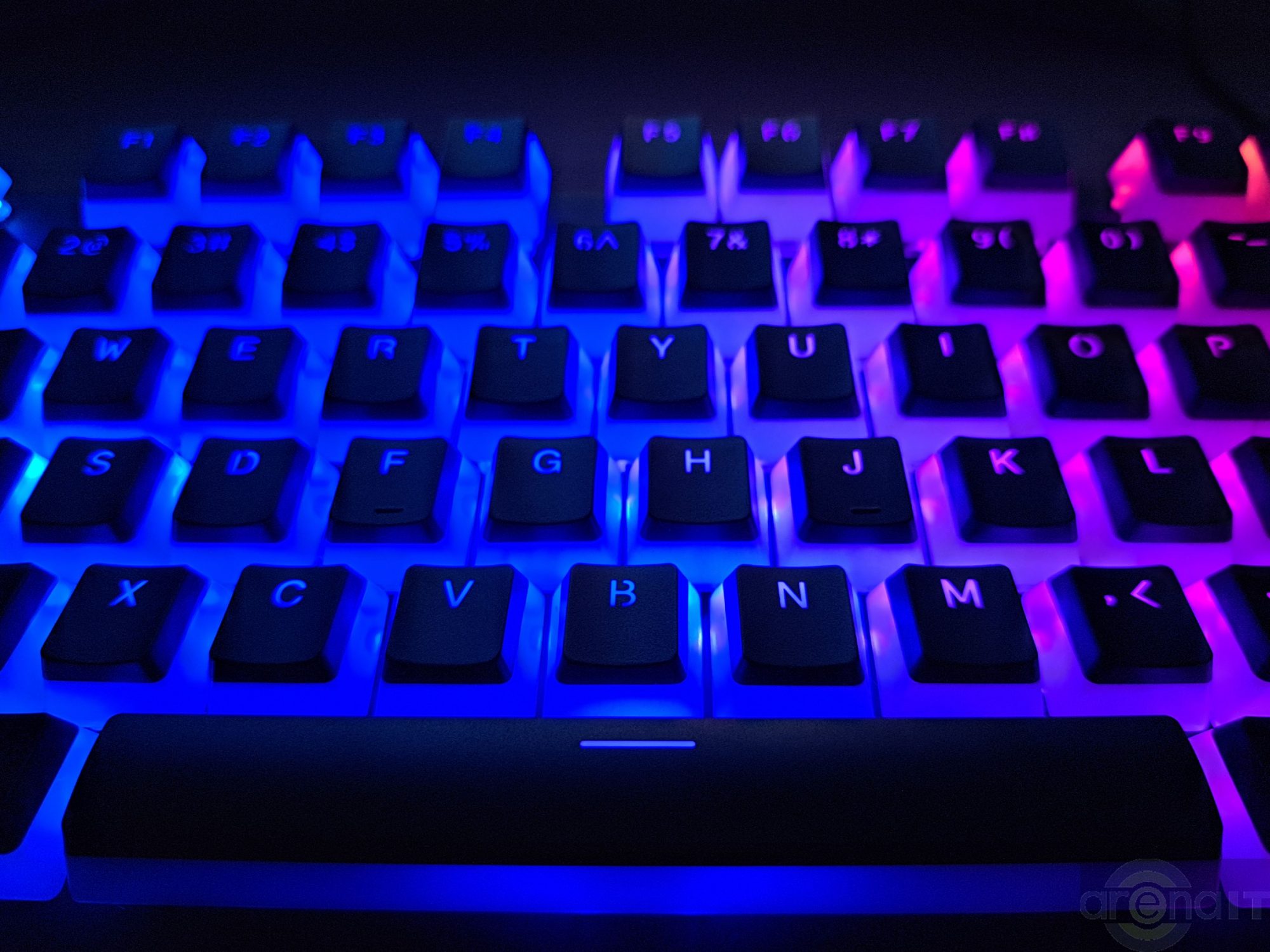 Iluminarea RGB se face in primul rand in interiorul tastelor si nu sub ele. Faptul ca 70% din tasta este semitransparenta creaza o lumina ambientala foarte placuta intre taste si le delimiteaza intr-un mod elegant. Este una dintre acele tastaturi pe care o poti lasa sa iti lumineze ambiental biroul fara sa te deranjeze.