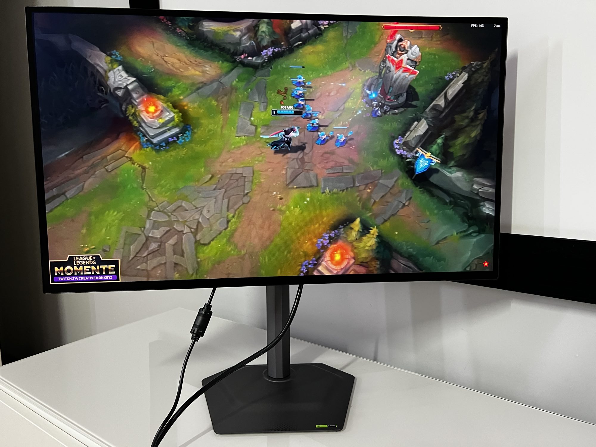 Avantajele OLED sunt clare: culori mai vii, contrast practic infinit și un timp de răspuns aproape instantaneu, 0,03 ms. În jocuri competitive sau single-player cinematice, imaginea arată impecabil, cu negru profund și tranziții foarte curate între umbre și lumini. În cazul lui MO27Q28G, panoul WOLED de generația a 4-a reușește și o luminozitate foarte bună, cu aproximativ 330–335 cd/m² în SDR și până la aproximativ 1500 cd/m² peak în HDR. Monitorul oferă suport pentru DisplayHDR True Black 500, acoperire de aproximativ 99,5% DCI-P3 și compatibilitate completă cu AMD FreeSync Premium Pro și NVIDIA G-Sync Compatible, deci fluiditatea imaginii este garantată indiferent de placa video.