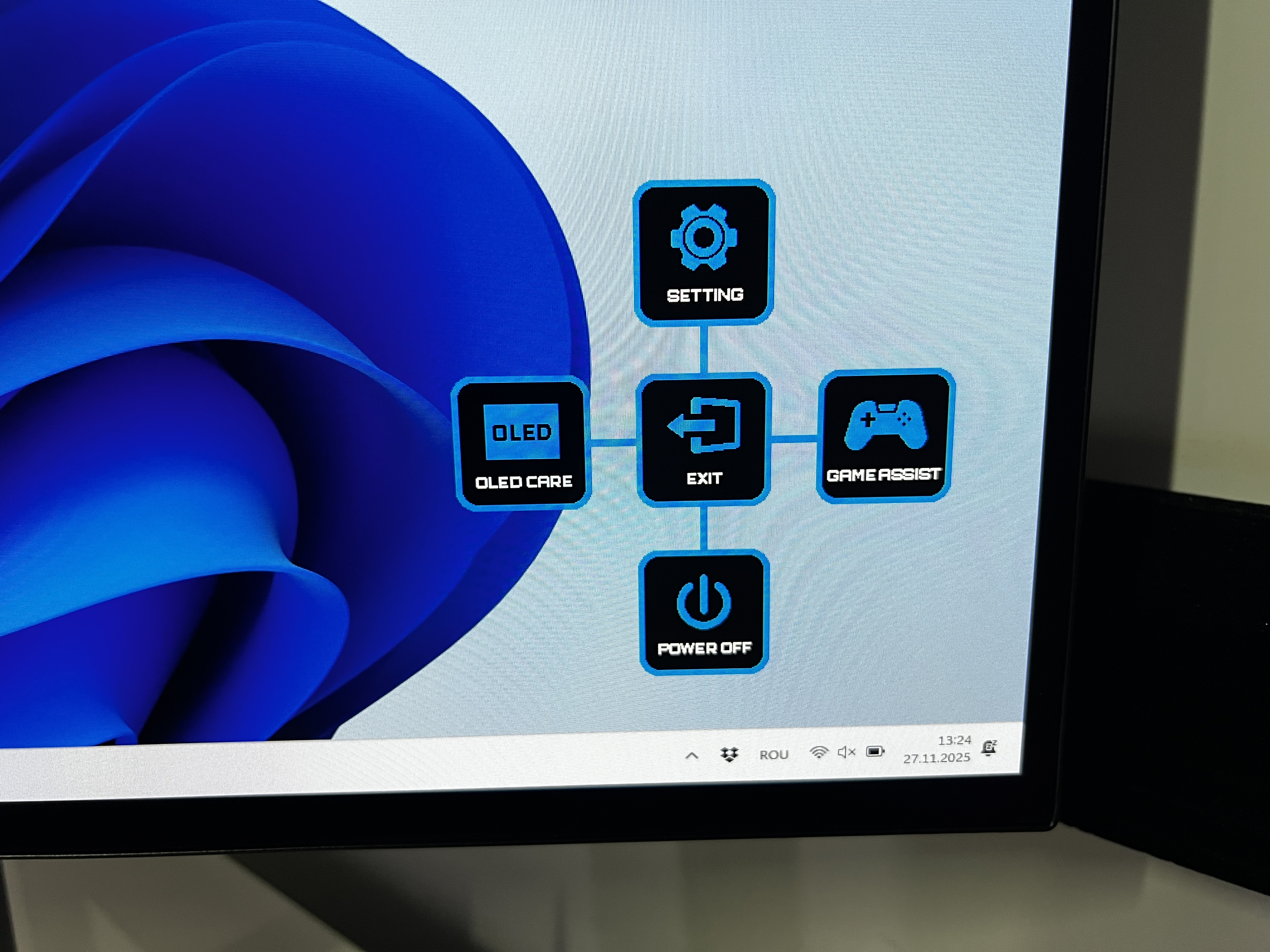 Meniul este simplu și ușor de accesat folosind joystick-ul de sub partea de jos a monitorului. OSD-ul este clar, bine structurat, ai acces rapid la profile, la setările de gaming și la funcțiile de protecție pentru OLED. Pozele în acest caz vorbesc de la sine.