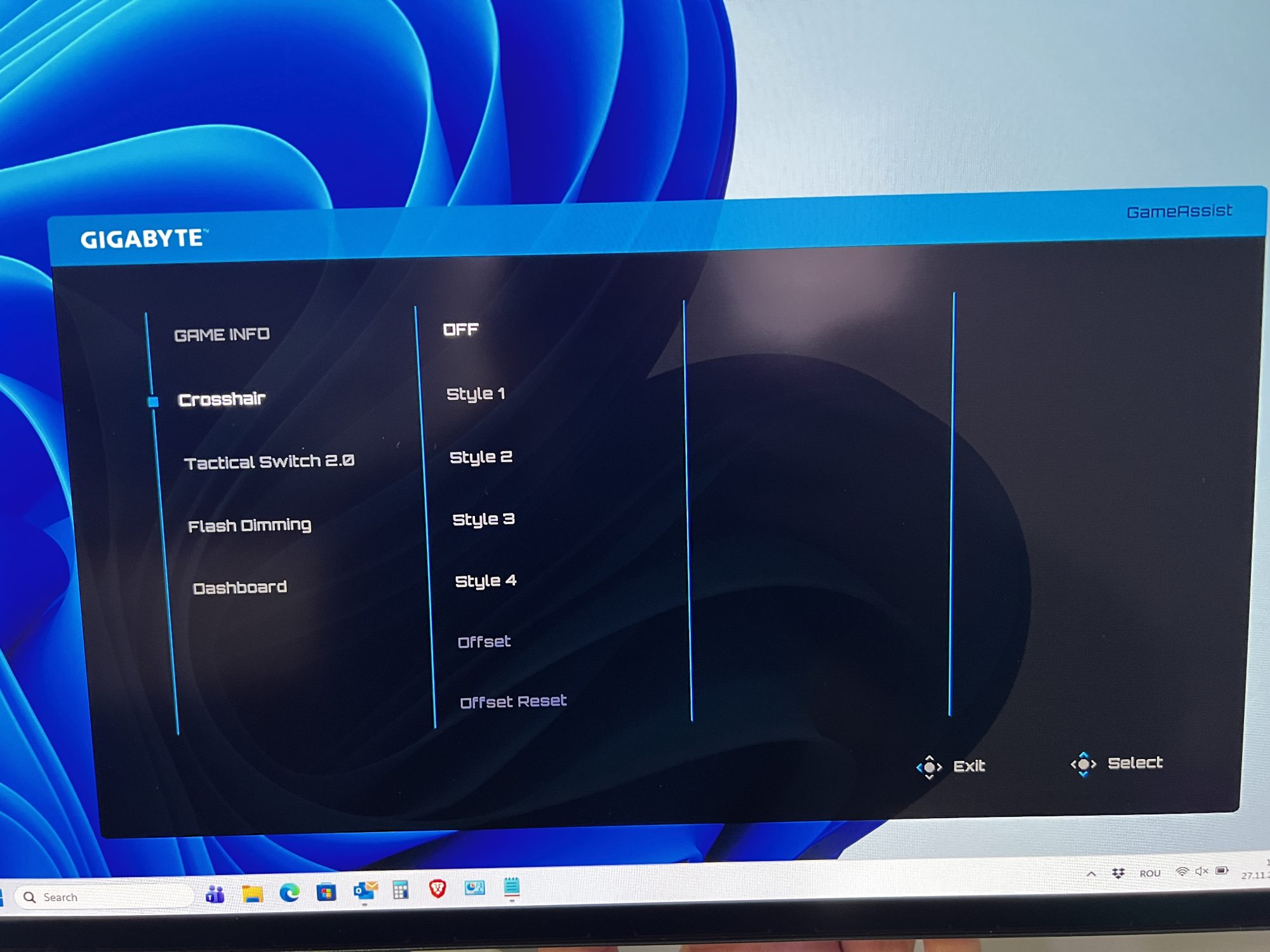 O altă funcție interesantă este reducerea diagonalei din software, de la 27 inch la 24 inch, prin Tactical Switch. Practic îți face imaginea mai mică și rămân niște dungi negre aproape insesizabile datorită panoului OLED, care oricum e perfect negru. Mi se pare interesant, mai ales pentru cei care vin din eSports de pe 24 inch și nu vor să-și schimbe foarte mult „feeling-ul”, dar eu personal nu simt nevoia să îl folosesc.