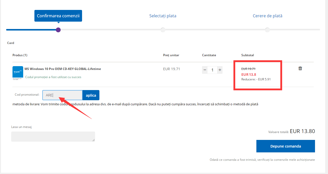 - Windows 10 Pro OEM KEY-Lifetime -13,8€(30% cod promoțional: ARE)