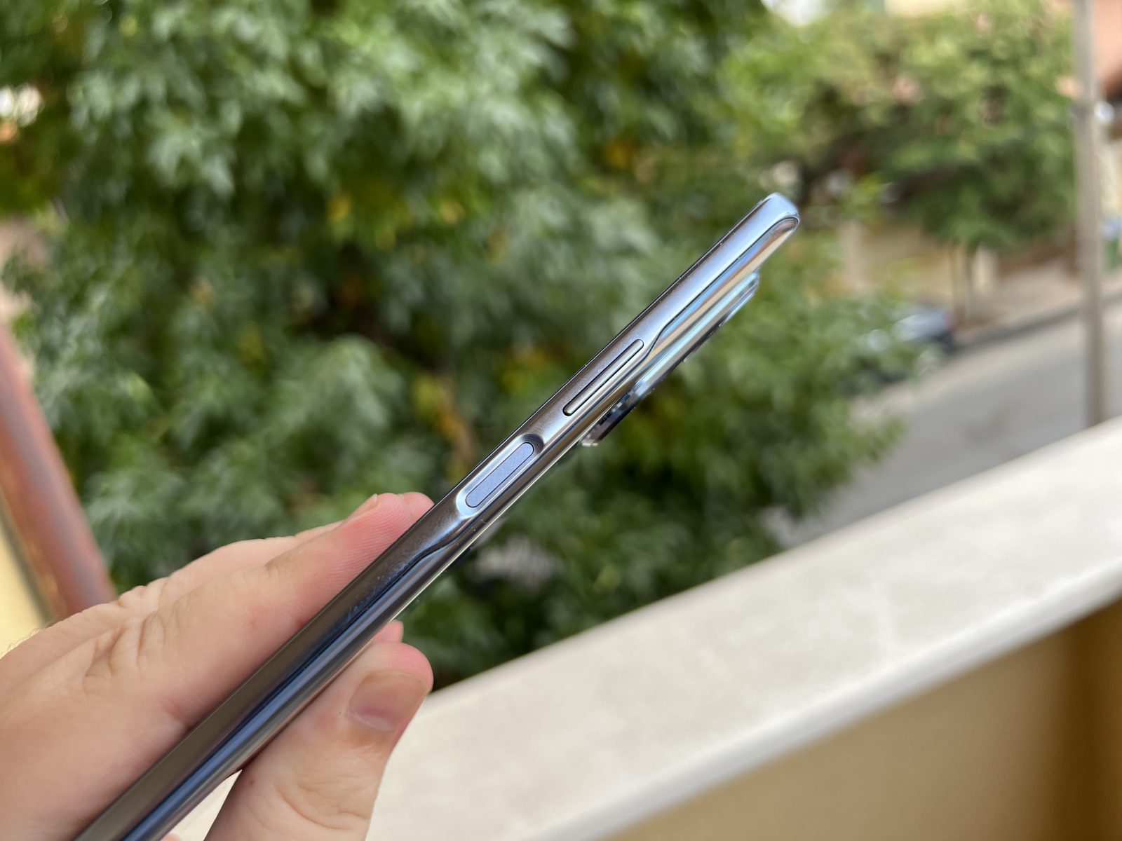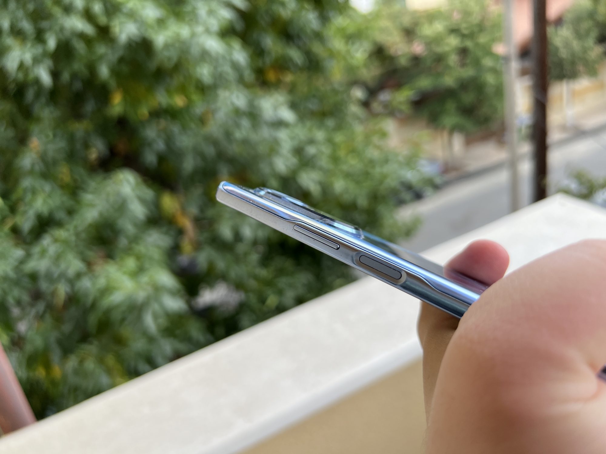 Dispune de un ecran de 6.78 inch cu rezolutie 1080 x 2388 pixeli, cu un SBR de 89.5% (Screen to Body Ratio). Este un ecran mare cu margini extrem de inguste, fara notch dar cu barbie. Doamne cum ar fi aratat telefonul asta fara barbie 🙂 Pentru ca sus au renuntat sa implementeze difuzorul in ecran sau intre ecran si carcasa ci l-au integrat fix in carcasa, deci nu incurca nimic ecranul sa fie dus pana in margine.