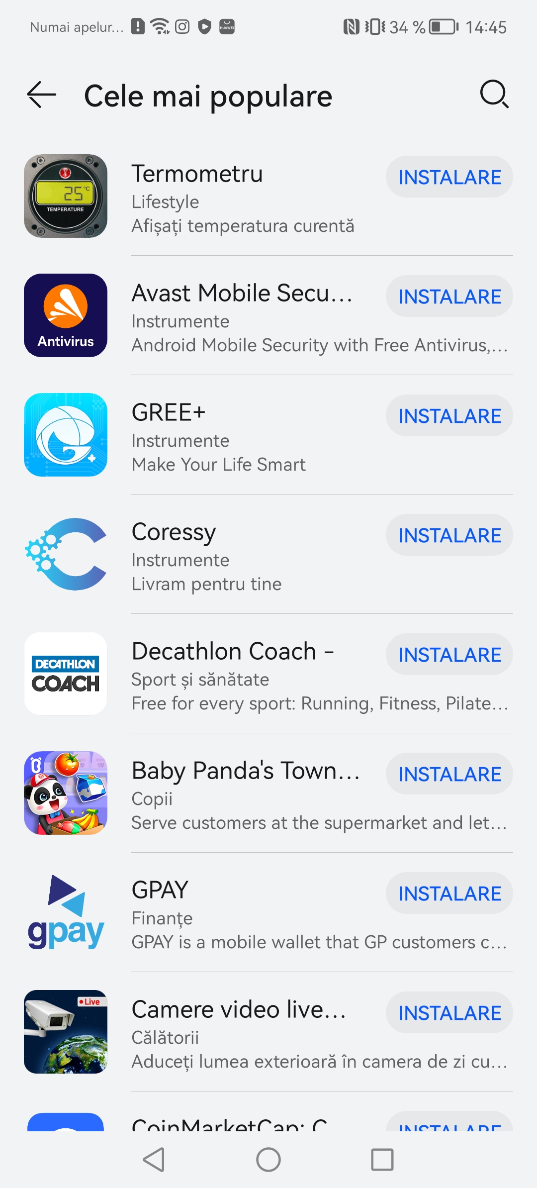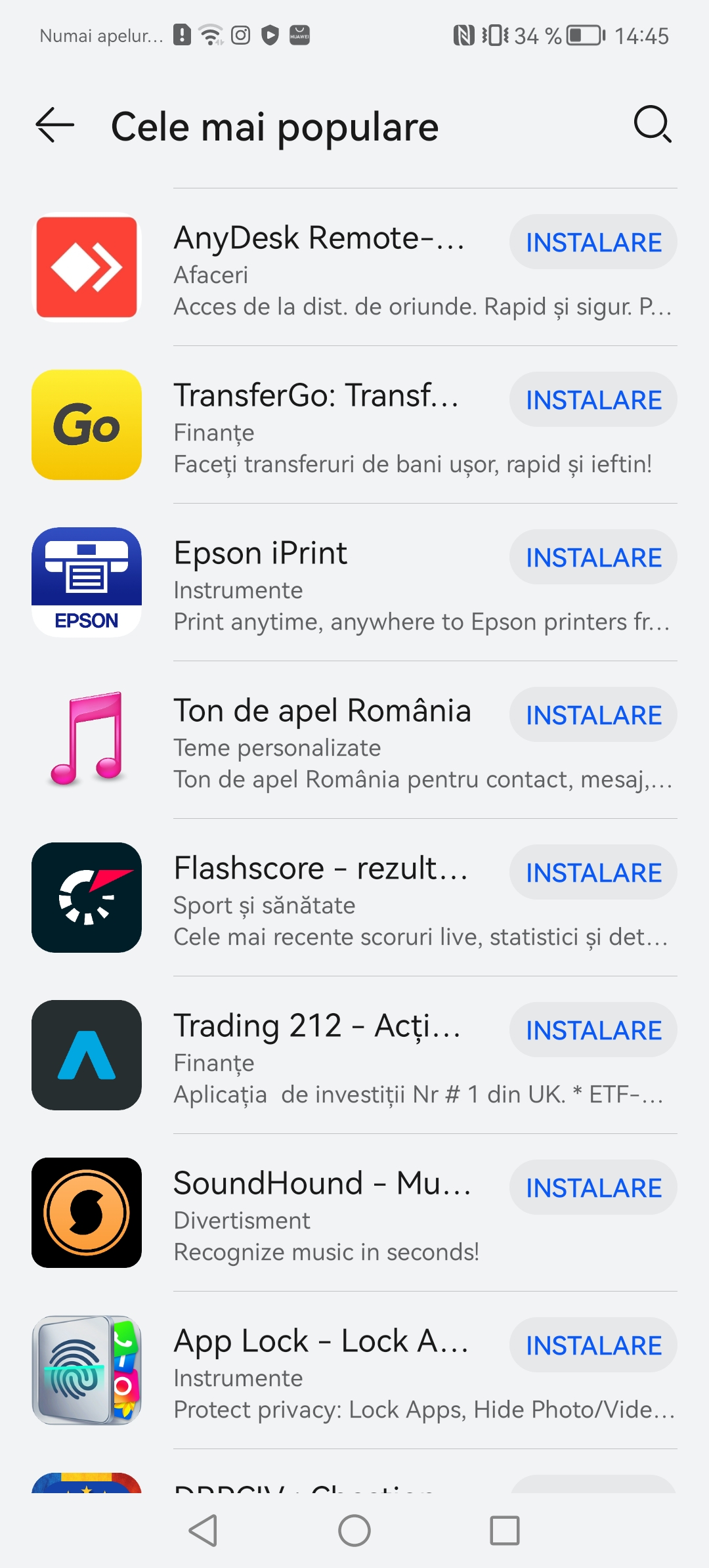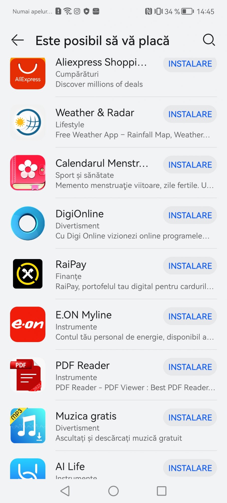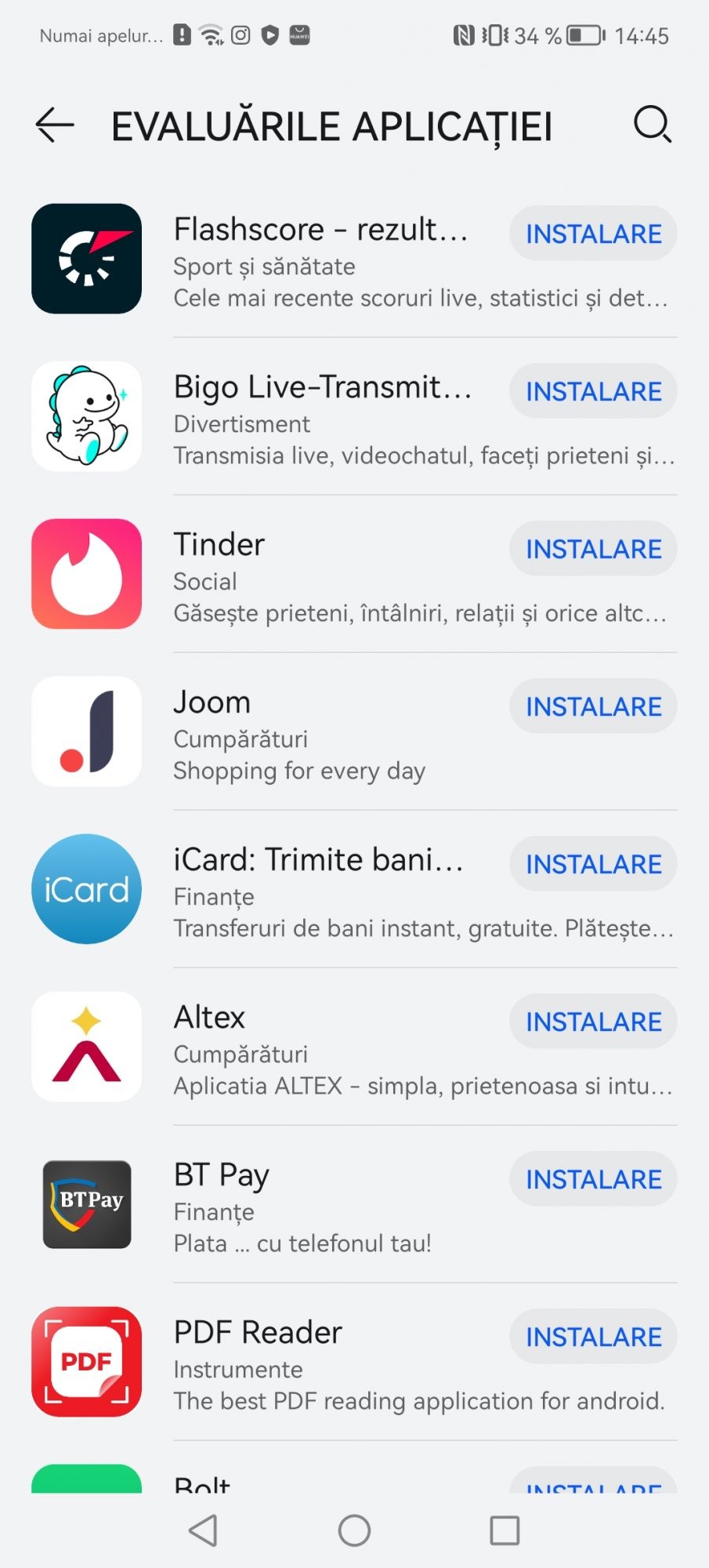 Prima solutia si cea oficiala este AppGallery. Este magazinul lor propriu si personal de aplicatii. Au lucrat aproape cu dezvoltatorii locali de aplicatii ca sa ofere nativ cele mai populare servicii pe telefoanele Huawei. Gasiti aplicatii precum Best Jobs, eToken, Raiffeisen Smart, ePantofi, MyVodafone, Moovit, Kaufland si inca multe altele. O sa va pun print screen ca sa nu le enumar pe toate.