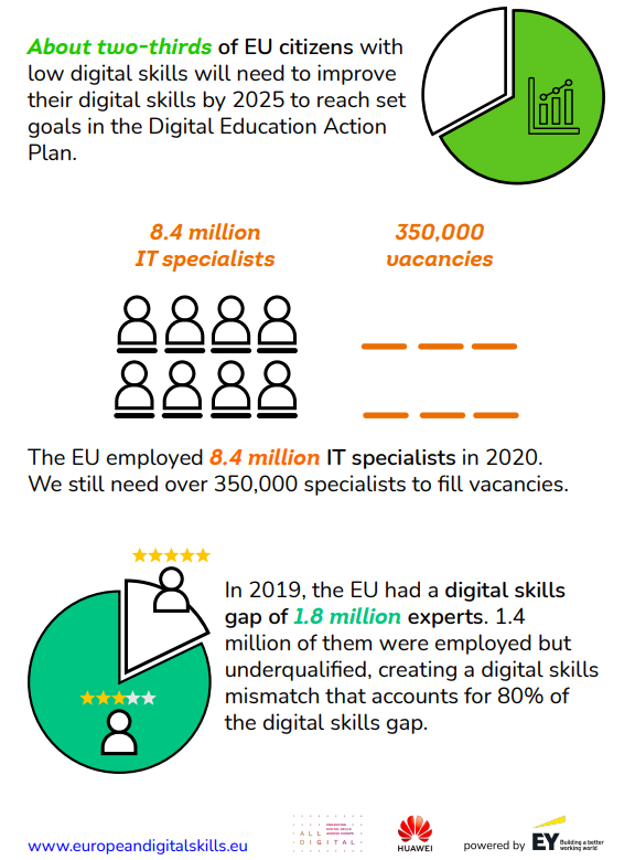 ALL DIGITAL, HUAWEI și Erns&Young au lansat un studiu privind competențele digitale, un efort comun pentru creșterea gradului de conștientizare a deficitului privind abilitățile în domeniu la nivelul Uniunii Europene. Studiul a fost prezentat în cadrul unui eveniment de lansare, în fața unei comunități de experți, pe 27 aprilie 2022, la Biblioteca Solvay din Bruxelles.