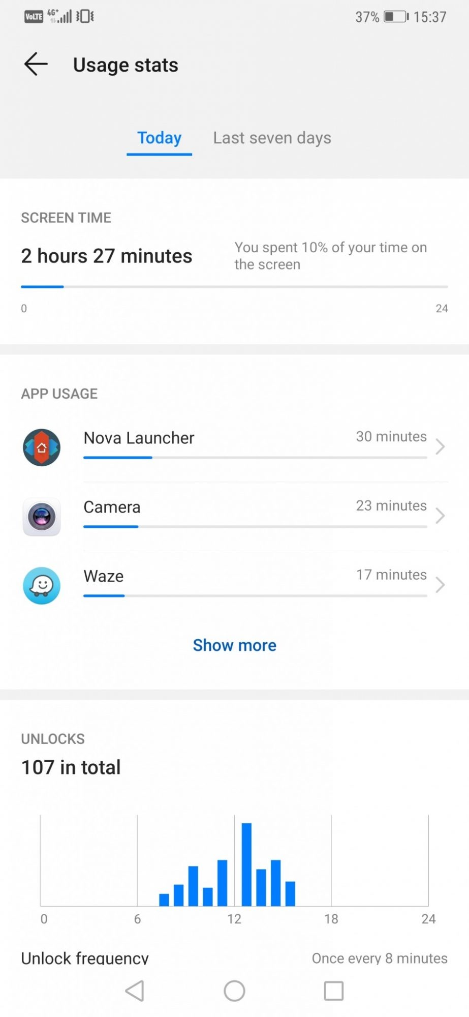 Cea mai mare baterie dintr-un flagship ii ofera lui Mate20Pro o autonomie peste cea a lui Note 9 (4000mAh). Pe scurt, un utilizator agresiv va reusi sa „topeasca” bateria acestuia sub o zi. Eu nu am ajuns in nici o seara acasa cu telefonul oprit indiferent daca era la ora 18 sau la ora 23. Cu ajutorul aplicatiei Digital balance puteti analiza timpul petrecut zilnic pe telefon, cat timp ati petrecut pe Facebook, cat timp alaturi de Waze, etc. Aceasta ofera optiunea Screen time management care ajuta utilizatorul in a-si limita timpul petrecut pe telefon: cate aplicatii poti deschide pe zi, cat il poti folosi maxim sau restrictionarea aplicatiilor intre anumite intervale precum peste noapte. Se poate seta un PIN pentru a suprascrie aceste setari si ofera un mod parental pentru a controla accesul copilui la telefon.