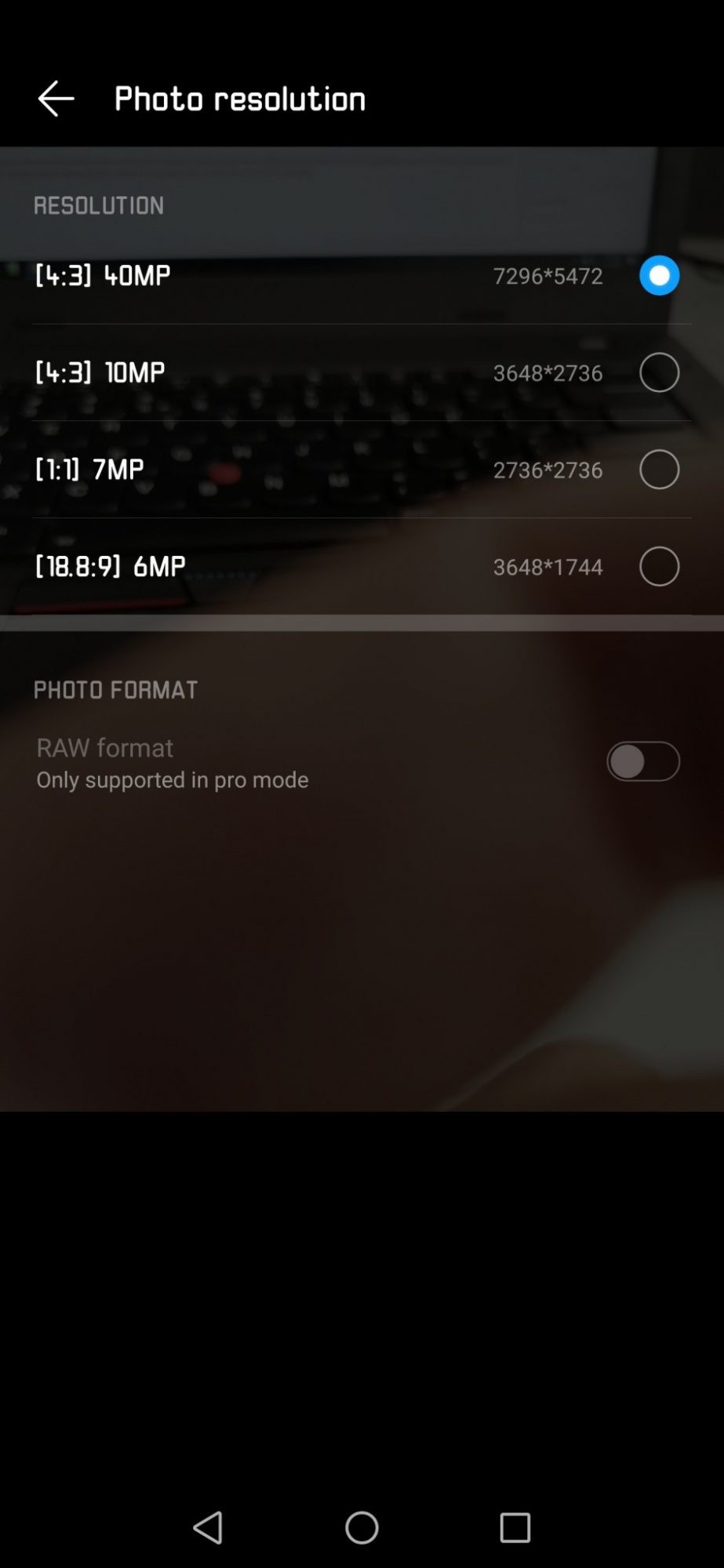 Meniul camerei foto este foarte bogat in optiuni si explicit cu ce poate si ce nu poate sa faca anumite moduri selectate. Spre exemplu daca optezi pentru o fotografie de 40Mp, nu vei putea folosi zoom-ul deloc. Pentru a-l putea folosi trebuie modificata rezolutia fotografiei la maxim 10MP, unde vor fi disponibile toate optiunile de zoom: 3x, 5x si 0.6x ( modul wide-angle). Modul moving-picture suporta tot o rezolutie maxima de 10MP. In tabelul de mai jos am trecut toate modurile disponibile precum si rezolutiile.