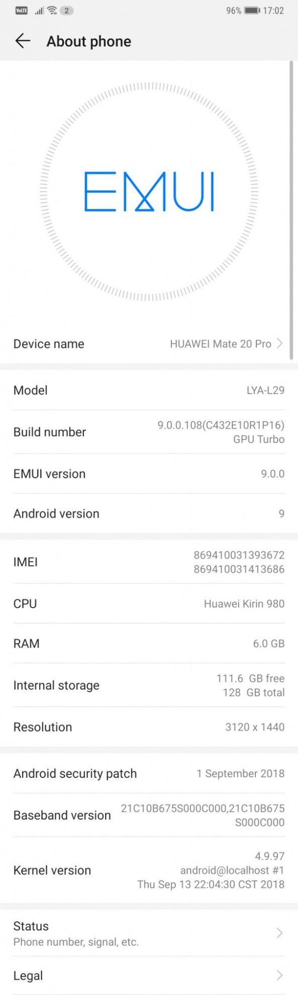 Software.Mate20Pro a fost lansat cu cea mai noua versiune Android Pie si interfata Emotion UI sau EMUI 9.0.0. Dupa o zi mi-am descarcat si configurat Nova Launcher, intrucat EMUI nu se preta gusturilor mele. Nivelul de securitate in momentul pornirii telefonului a fost la 1 septembrie 2018, intre timp am primit un update care l-a adus la 1 octombrie 2018.