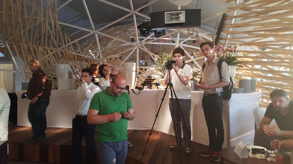 Toate telefoanele au fost prinse de standuri, iar lumina nu a fost tocmai buna pentru a realiza un material video. Insa cu ajutorul lui George Buhnici, care ne-a oferit pentru cateva minute un telefon „liber” (ii si multumim cu aceasta ocazie inca o data), am reusit sa filmam si sa pozam telefonul in aer liber, pe terasa.