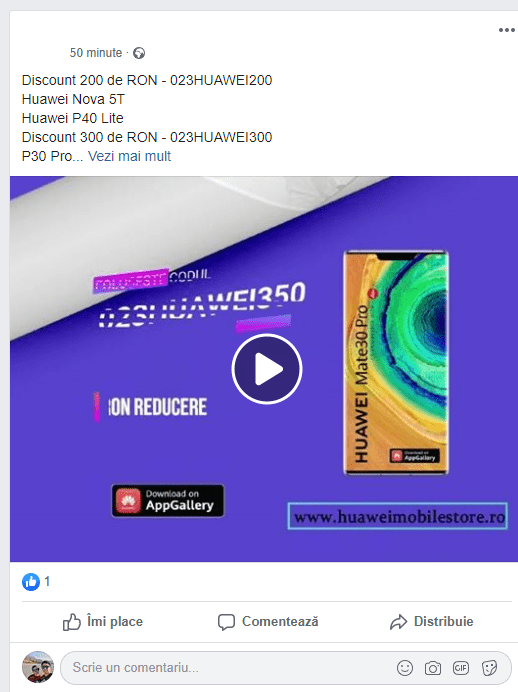 Totusi, Huawei incearca sa-si promoveze produsele in mediul online. Problema este felul in care acestia au decis sa faca acest lucru, caci in esenta nu ar fi ceva rau. Acum cateva saptamani am primit pe site cateva comentarii la articolele Huawei. Cineva chiar a stat sa caute cele mai recente articole si sa lase comentarii pentru a promova magazinul lor.