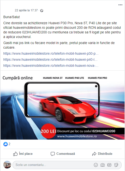 Problema nu este ca Huawei incearca sa-si promoveze produsele in online prin diferite publicatii. Nu este nimic rau sa faci asta. Problema apare cand astfel de persoane pur si simplu incearca prin diferite mijloace sa publice informatii despre produsele si serviciile companiei prin comentarii pe site-urile de profil, grupuri de Facebook etc.