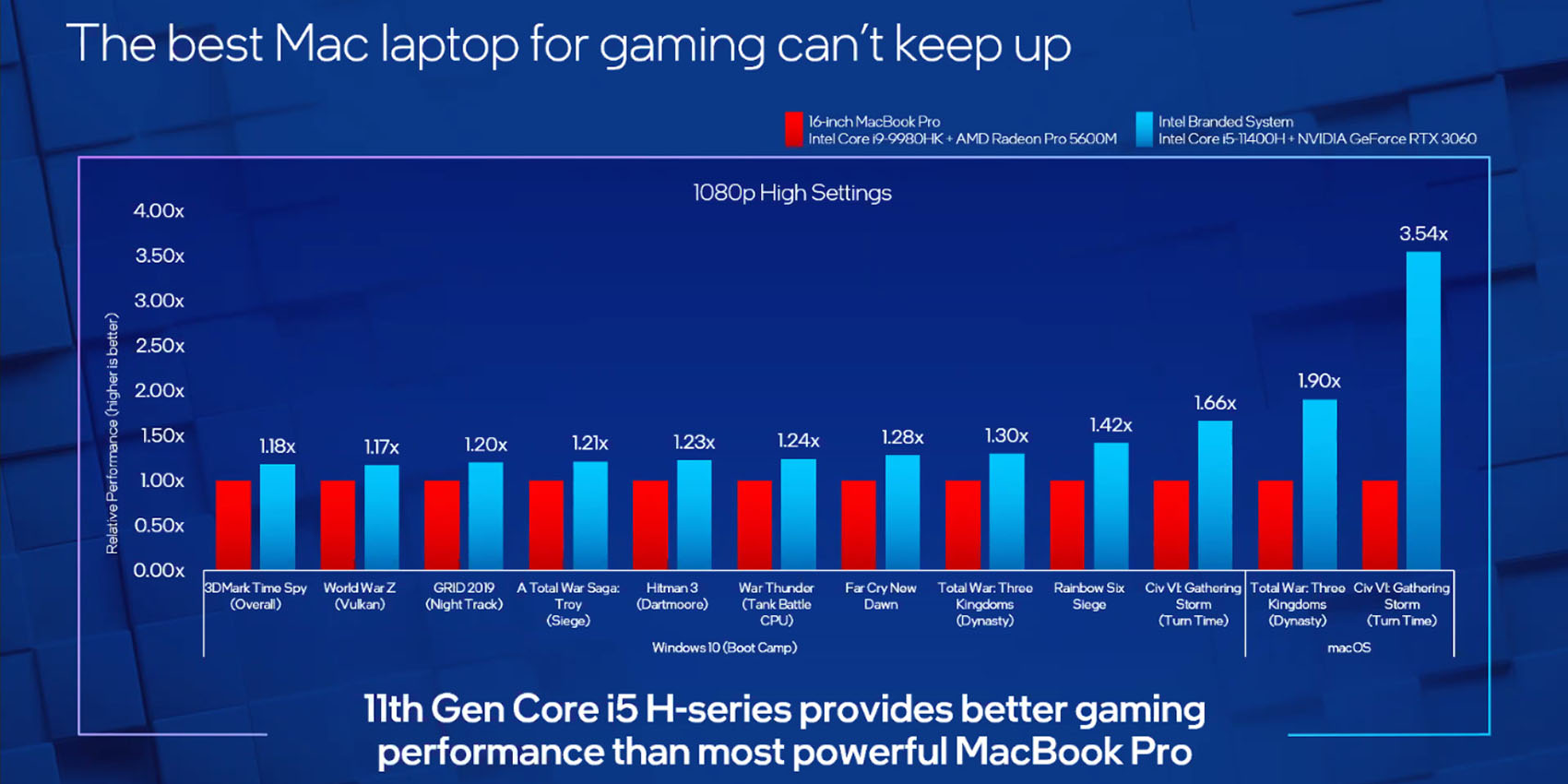 Practic ei au comparat un Mac cu procesor Intel vechi cu un laptop cu Windows care foloseste un procesor din generatia noua. Doar nu erau fraieri sa-l compare cu un MacBook Pro echipat cu M1…