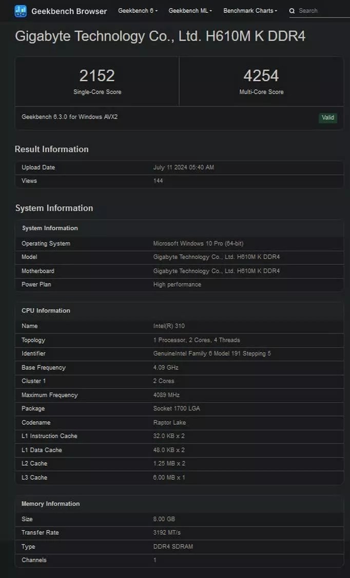 Da, ați citit bine. Intel chiar are în plan lansarea unui procesor dual core în 2024. Conform informațiilor apărute în baza de date Geekbench, acesta are Hyper Threading și pare să fie bazat pe arhitectura procesoarelor curente Raptor Lake. Cel mai probabil, Intel Processor 310, căci așa se numește, va fi cel mai accesibil procesor desktop din line-up-ul de procesoare desktop de la Intel.