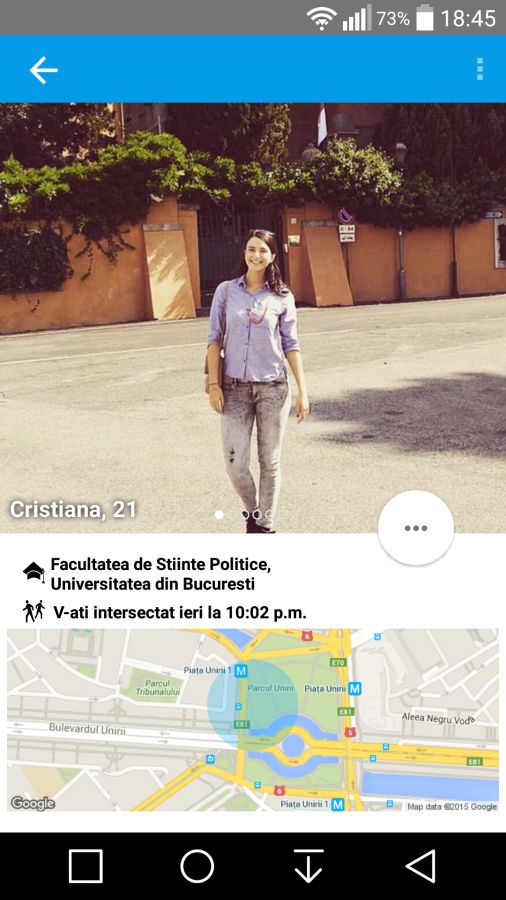 Aplicatia o gasesti in magazin. O descarci, o instalezi, te loghezi cu Facebook-ul si gata. Ce face? Pai este destul de simplu. Aplicatia iti preia pozele de profil, varsta si locul unde lucrezi sau inveti. Dupa care, atunci cand pleci in oras, aplicatia te va informa daca in jurul tau mai este cineva care o foloseste. Te avertizeaza printr-o notificare ca „te-ai intersectat cu cineva” si poti adauga persoana la prieteni pentru a comunica cu ea.