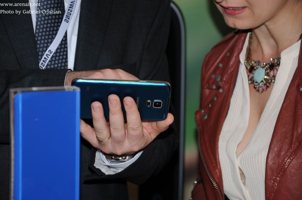 Pentru a putea face un hands on a trebuit sa ma lupt cu multimea de bloggeri, dar intr-un final am reusit sa scot cateva vorbe de la un reprezentat Samsung care mi-a vorbit pe scurt despre punctele cheie ale telefonului. Mai dureaza putin pana montez filmarea. Tot impreuna cu Galaxy S5 au fost prezentate si noul Gear 2 si Galaxy Fit, doua wearables sau tradus in romana gadget-uri ce pot fi purtate.
