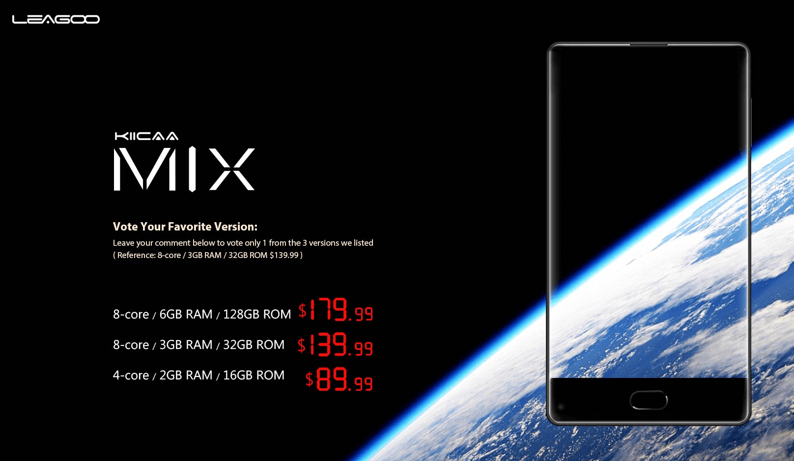 LEAGOO KIICAA MIX este un telefon chinezesc ce provine de la un brand in continua ascensiune. LEAGOO este un brand chinezesc care ne-a impresionat placut in ultimii ani cu produse revolutionare, accesibile si foarte aratoase. KIICAA MIX este cel mai frumos telefon al lor, avand un ecran Infinity precum Galaxy S8 sau Note 8.