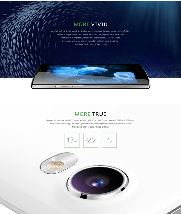 Pe spate are o camera de 13 megapixeli iar pe fata una de 8 megapixeli. Ecranul are 5 inch in diagonala si rezolutia de 1280 x 720 (HD 720). Telefonul se vinde pentru 130 de dolari pe Gearbest, un pret foarte bun dupa mine, iar folosind codul de reducere LEAGCN pretul acestuia scade la 115 dolari.