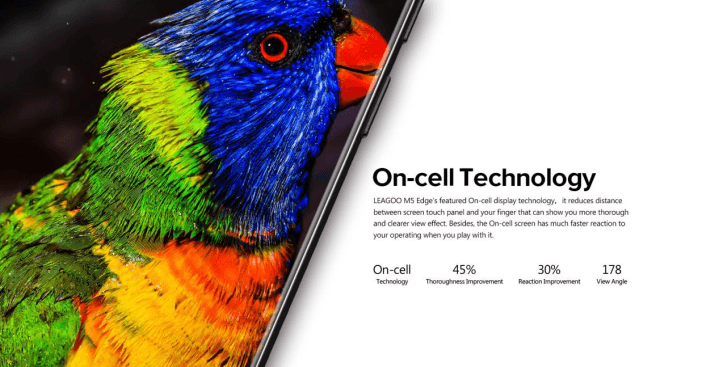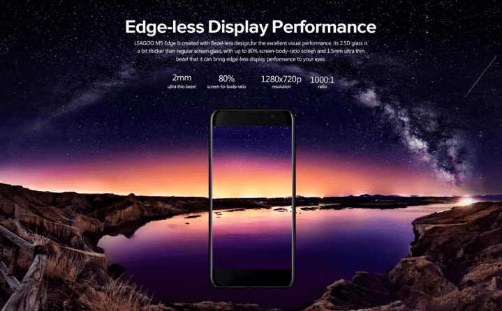 Leagoo M5 Edge iese in evidenta datorita ecranului. Acesta are sticla curbata 2.5D, un aspect ratio de 80% si margine de 1.5mm. Totusi, partea de sus si de jos nu este la fel de subtire.