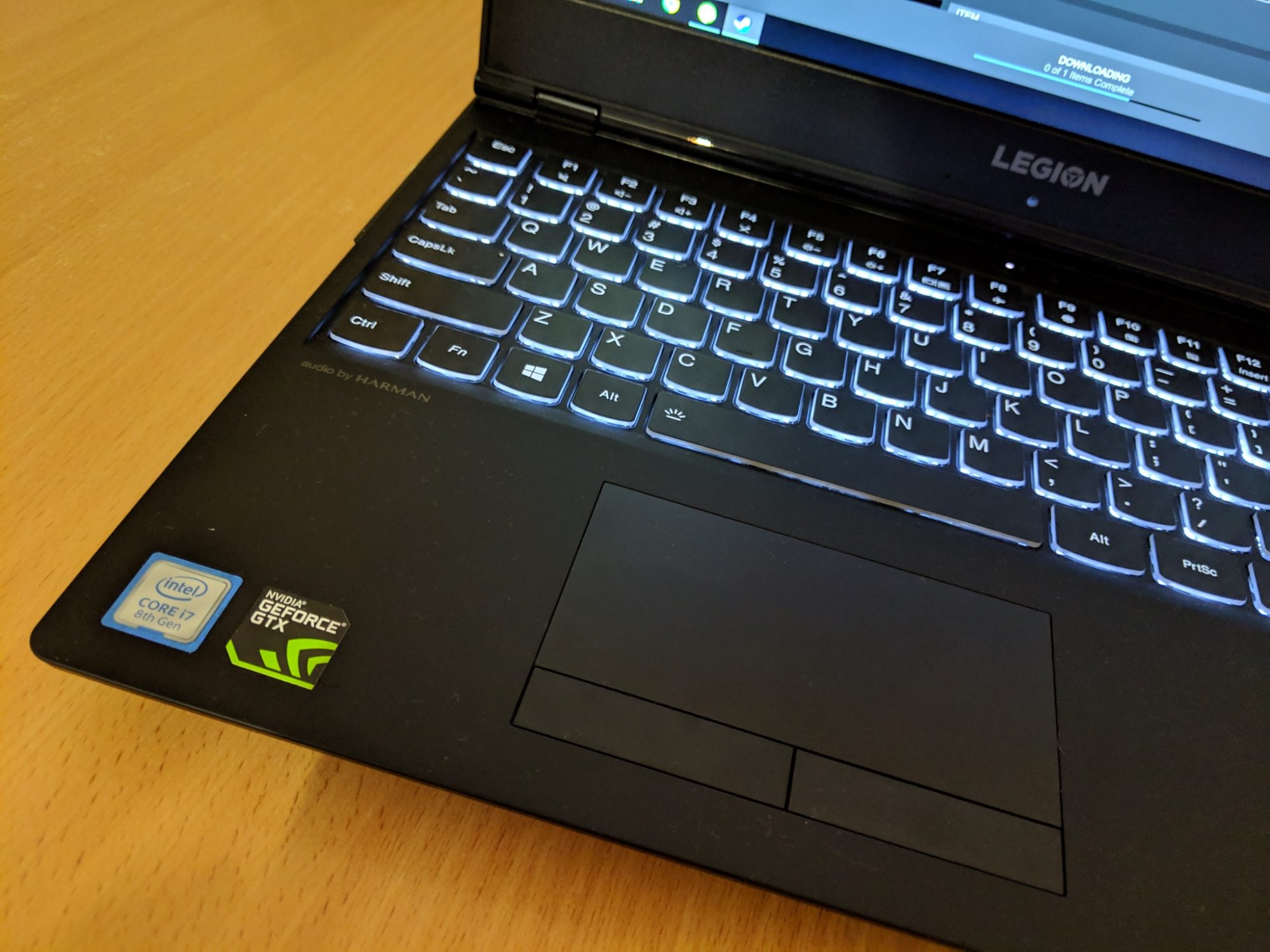 Y530 ar putea fi confundat usor cu un laptop business privit din departare. Integral negru, doar cu logo-ul Legion iluminat si cu o constructie din materiale de calitate si finisaje foarte bune, nu prea am ce sa ii reprosez la parea de constructie. Tastatura cu retroiluminare alba are un feedback placut pentru taste iar touchpad-ul raspunde prompt la comenzi si este precis. Cred ca este primul laptop la care chiar i-am folosit touchpad-ul pentru ca e o placere sa lucrezi cu el. Sistemul de racire este prevazut cu 2 canale, astfel incat placa video si procesorul sunt racite separat, iar cele 70 de lame individuale per canal reduc zgomotul.