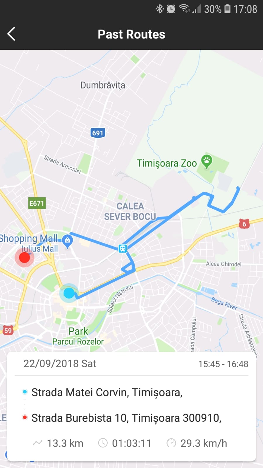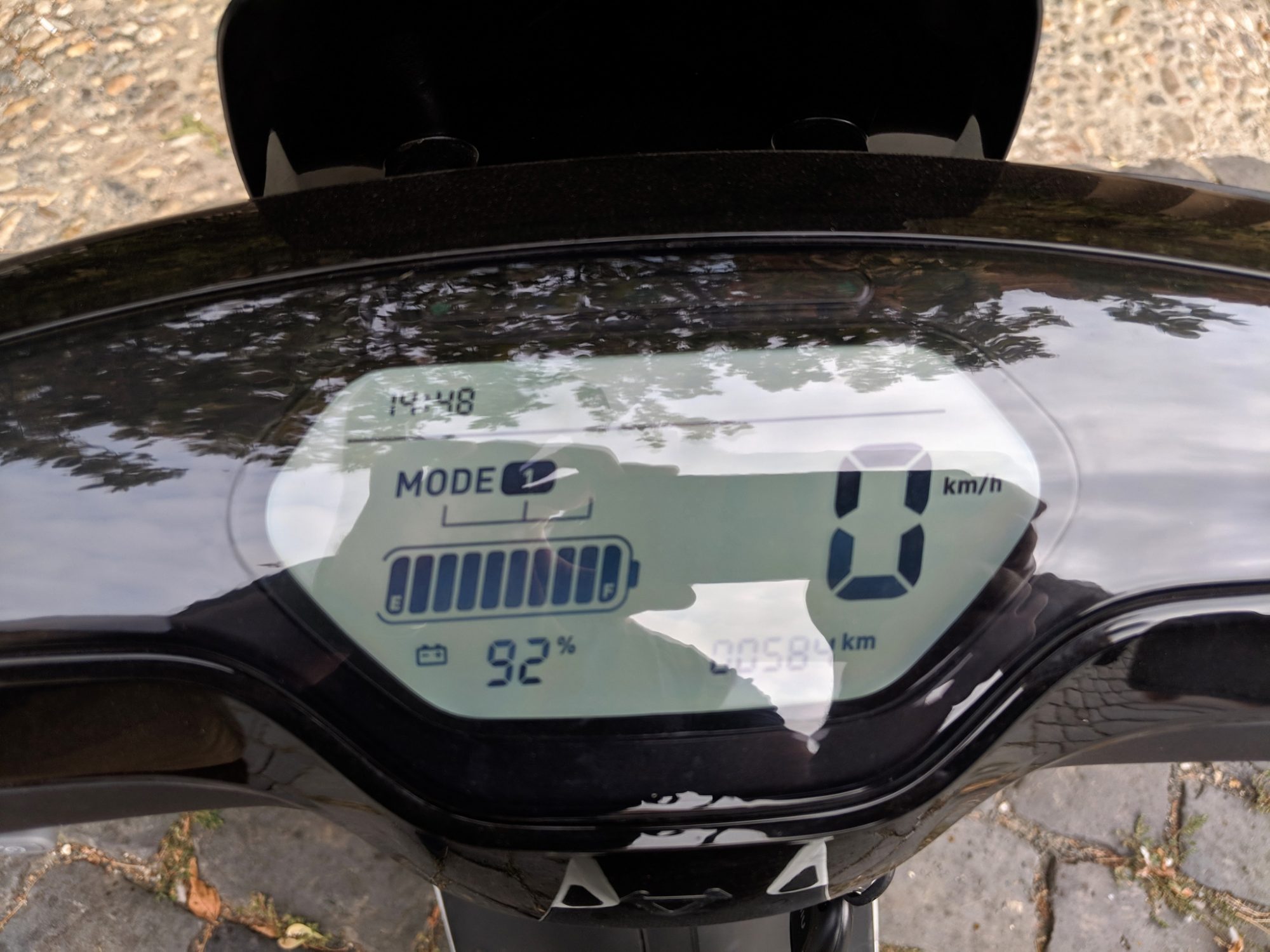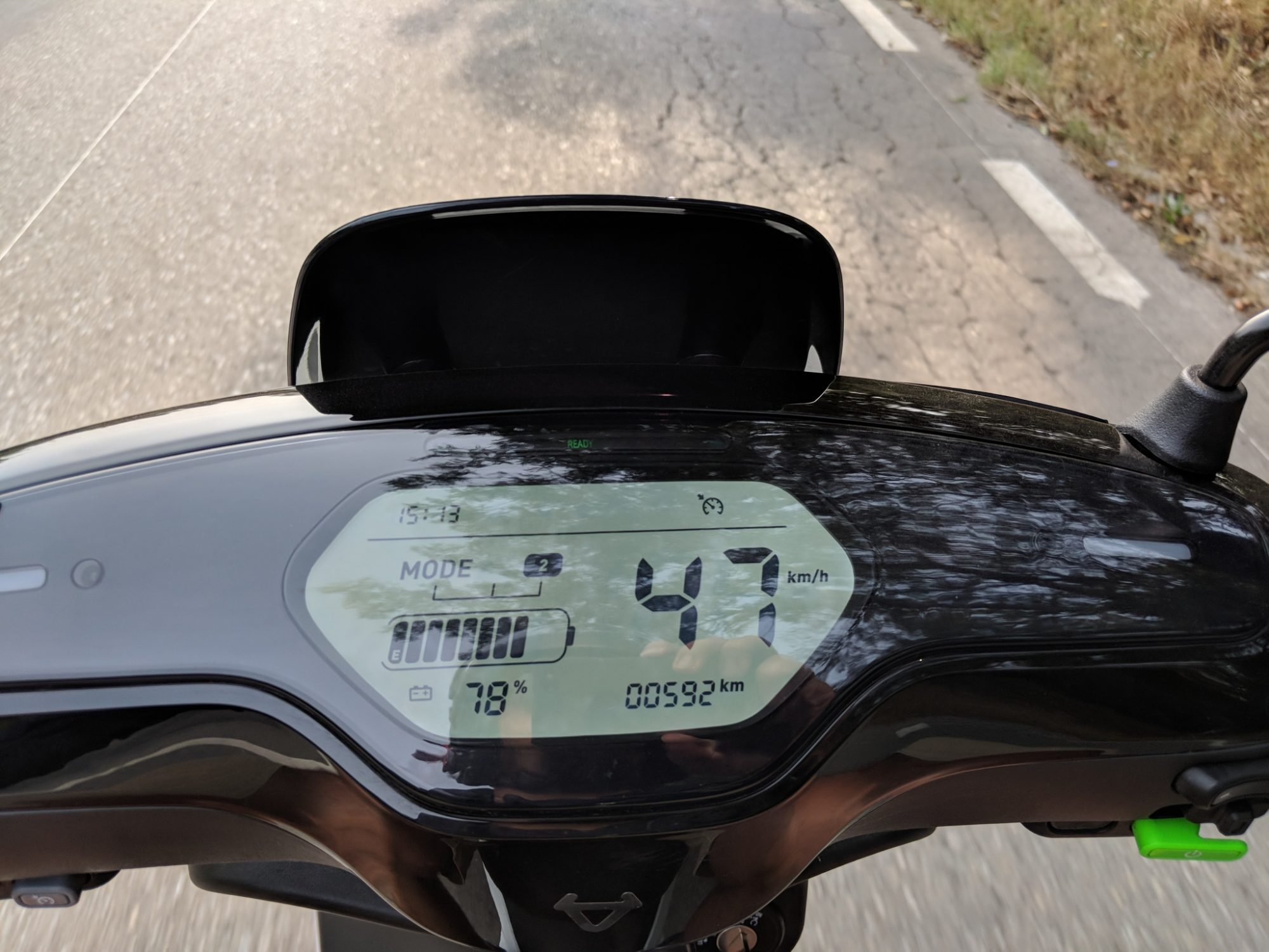 In cele 3-4 ore cat a fost scuterul la mine n-am folosit modul ECO decat de test de cateva ori, ca dovada este viteza medie de 30 Km/h. In rest am mers cu viteza maxima de fiecare data cand am avut ocazia. Iar avand in vedere ca a fost o sambata libera in Timisoara, am putut merge destul de des cu 45 Km/h.
