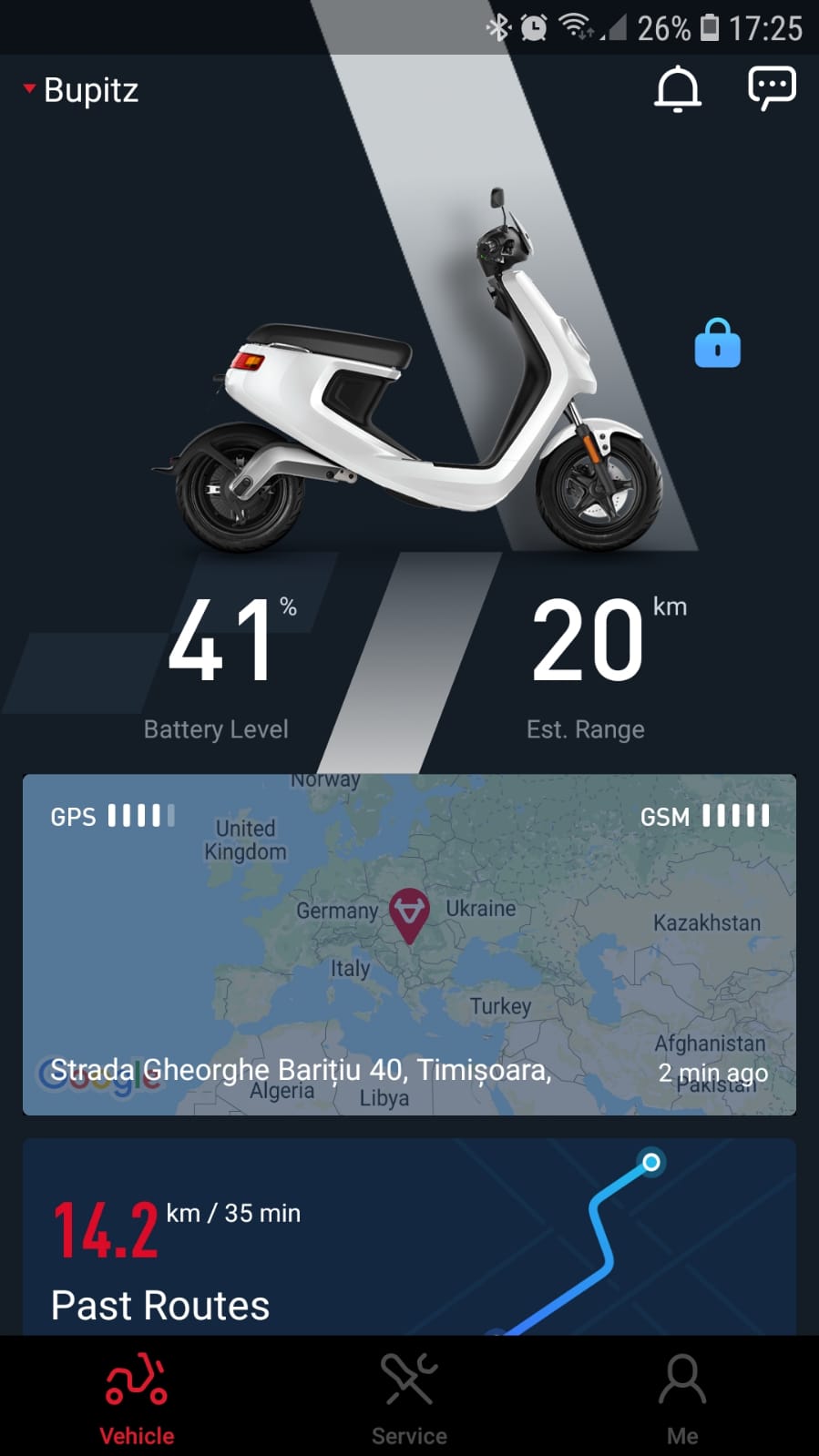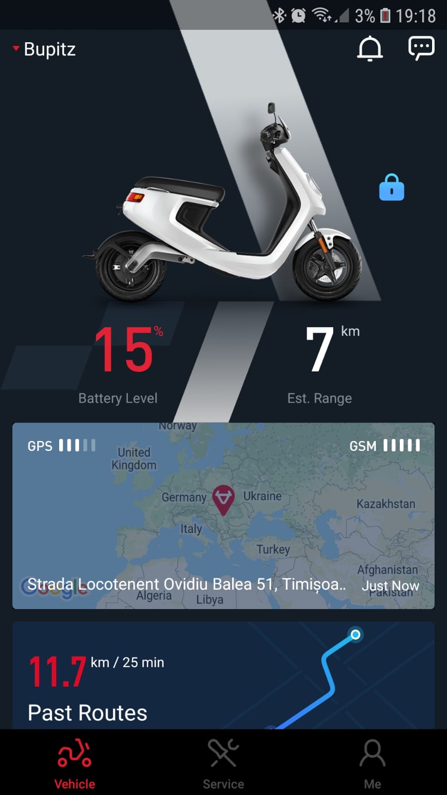 Fiecare scuter are alarma si aplicatie de mobil. Alarma se activeaza de pe cheie si in cazul in care cineva incearca sa fure scuterul proprietarul e avertizat prin intermediul aplicatiei de mobil. Toate scuterele vin cu 3 ani de tracking prin GPS gratuit (are si un SIM cu GSM inclus). Dupa cei 3 ani puteti prelungi din nou pe aceeasi perioada cu doar 50 euro. O suma mica pentru ceea ce ofera: pozitia in timp real a scuterului, alertare la miscare, toate drumurile facute sunt monitorizate prin GPS plus tot felul de statistici despre consum si condus.