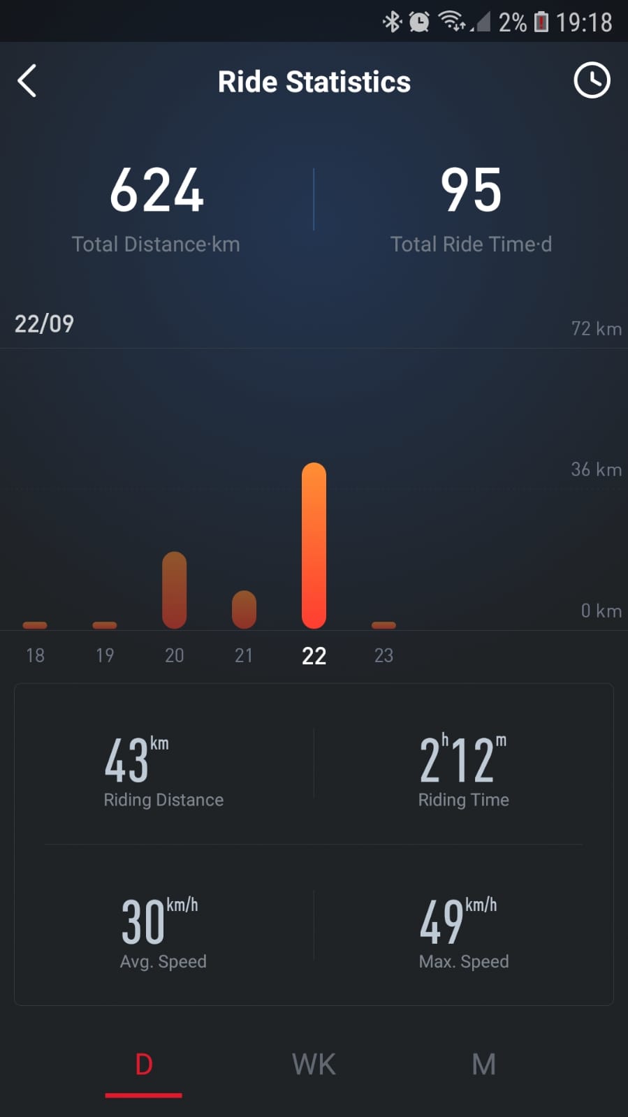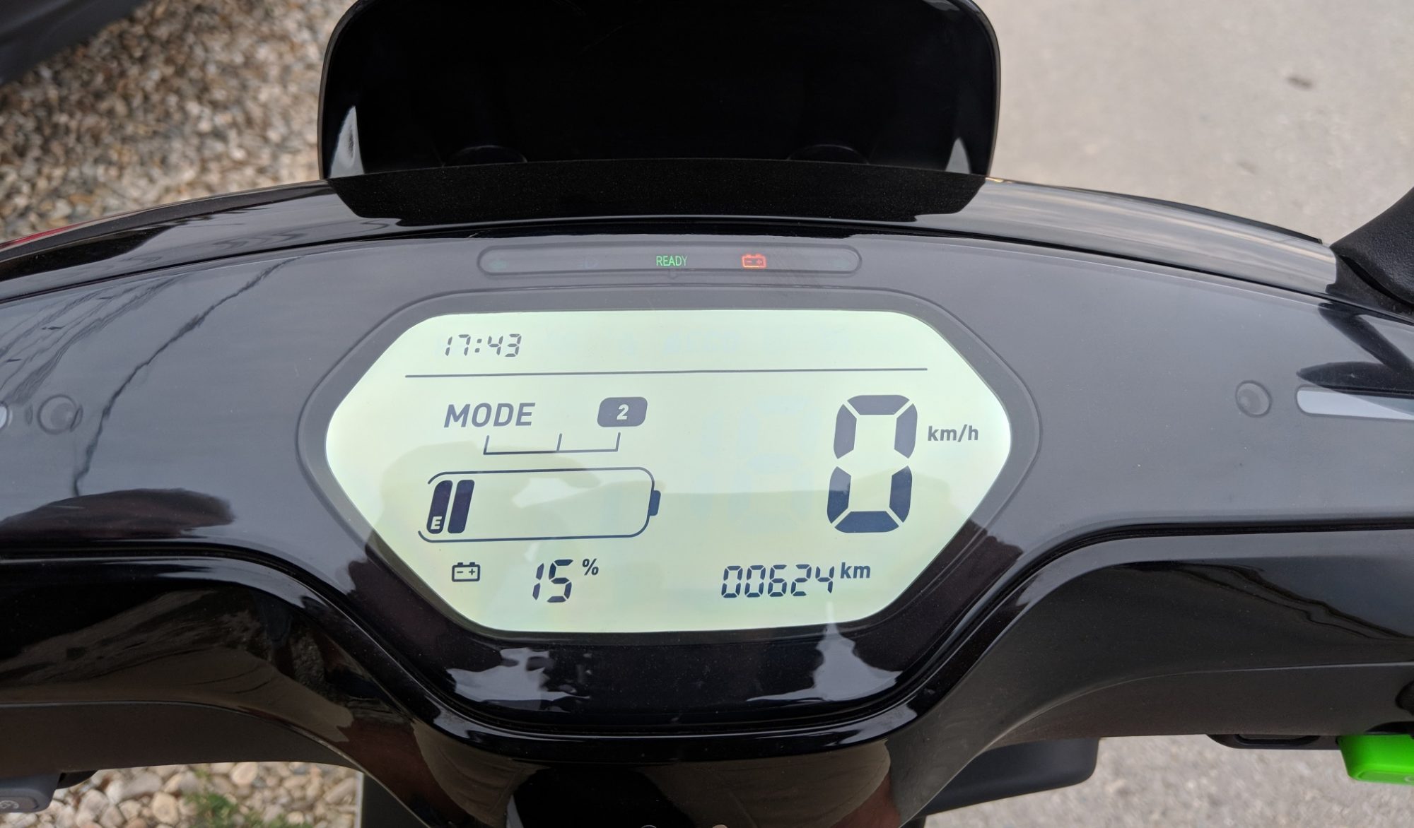 La finalul zilei, dupa ce am consumat 77% din baterie, am tras concluzia ca am parcurs 40 Km. Ca atare, cu un „plin”, ai putea face 50 Km sau mai mult, depinde cat de tare tragi de acceleratie.