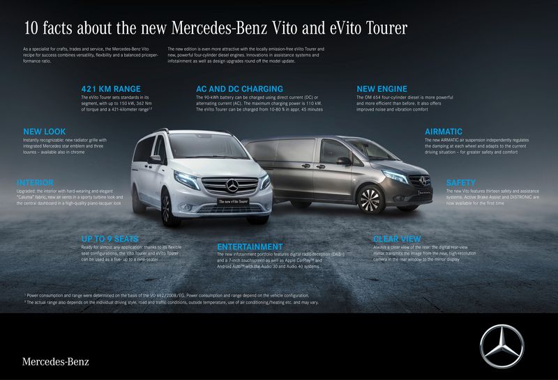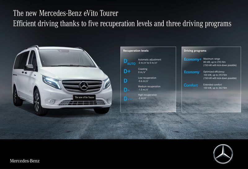 Noul Mercedes eVito va avea o autonomie de pana la 421 Km conform standardului WLTP. Bateria va fi de 90 kWh iar incarcarea se va face standard la maxim 50 kW, optional, insa se poate alerge o incarcare de 100 kW. Masina va cantari peste 3500 Kg si motorul va avea 200 CP, suficient pentru a putea duce decent cei 9 pasageri.