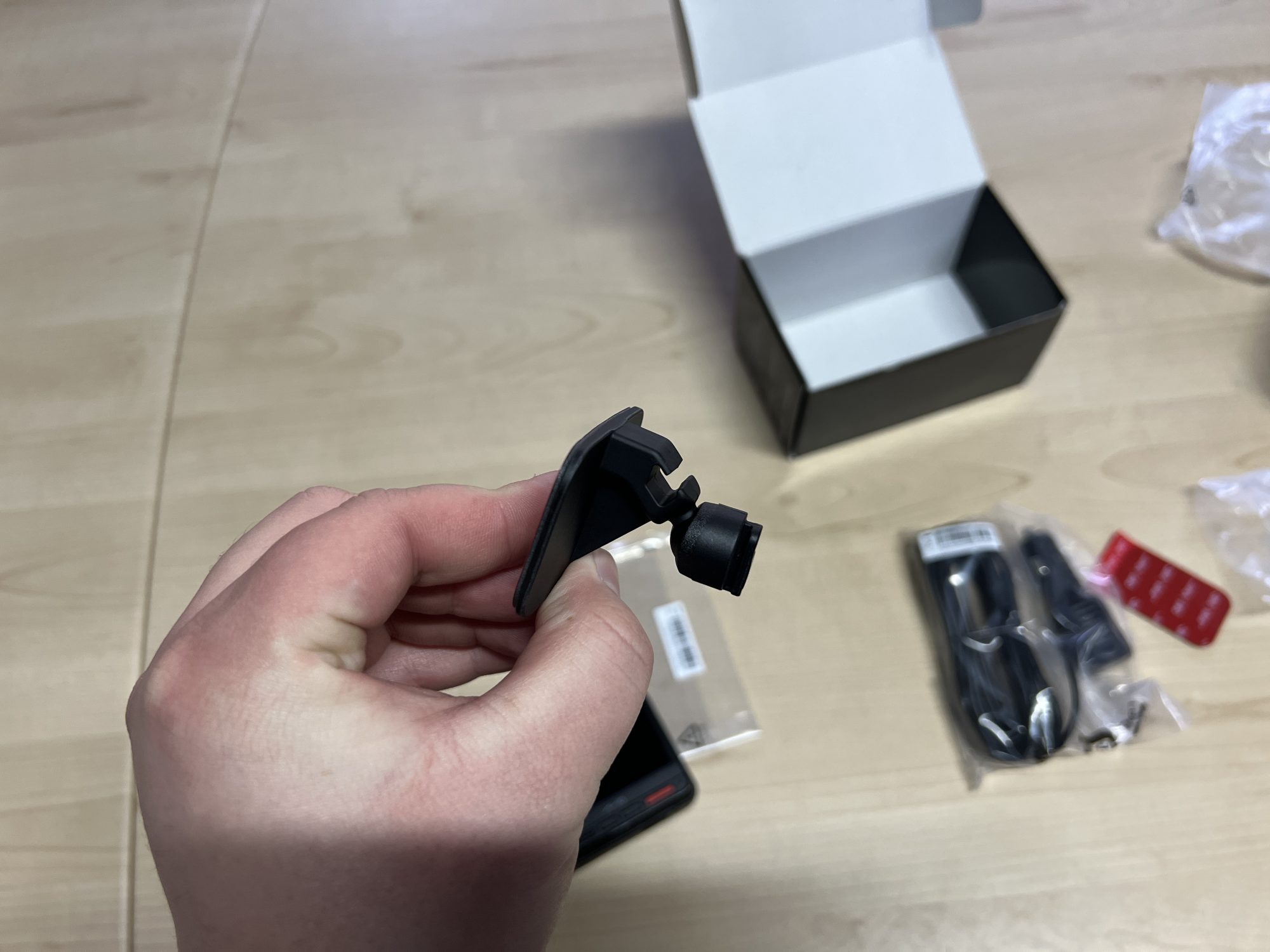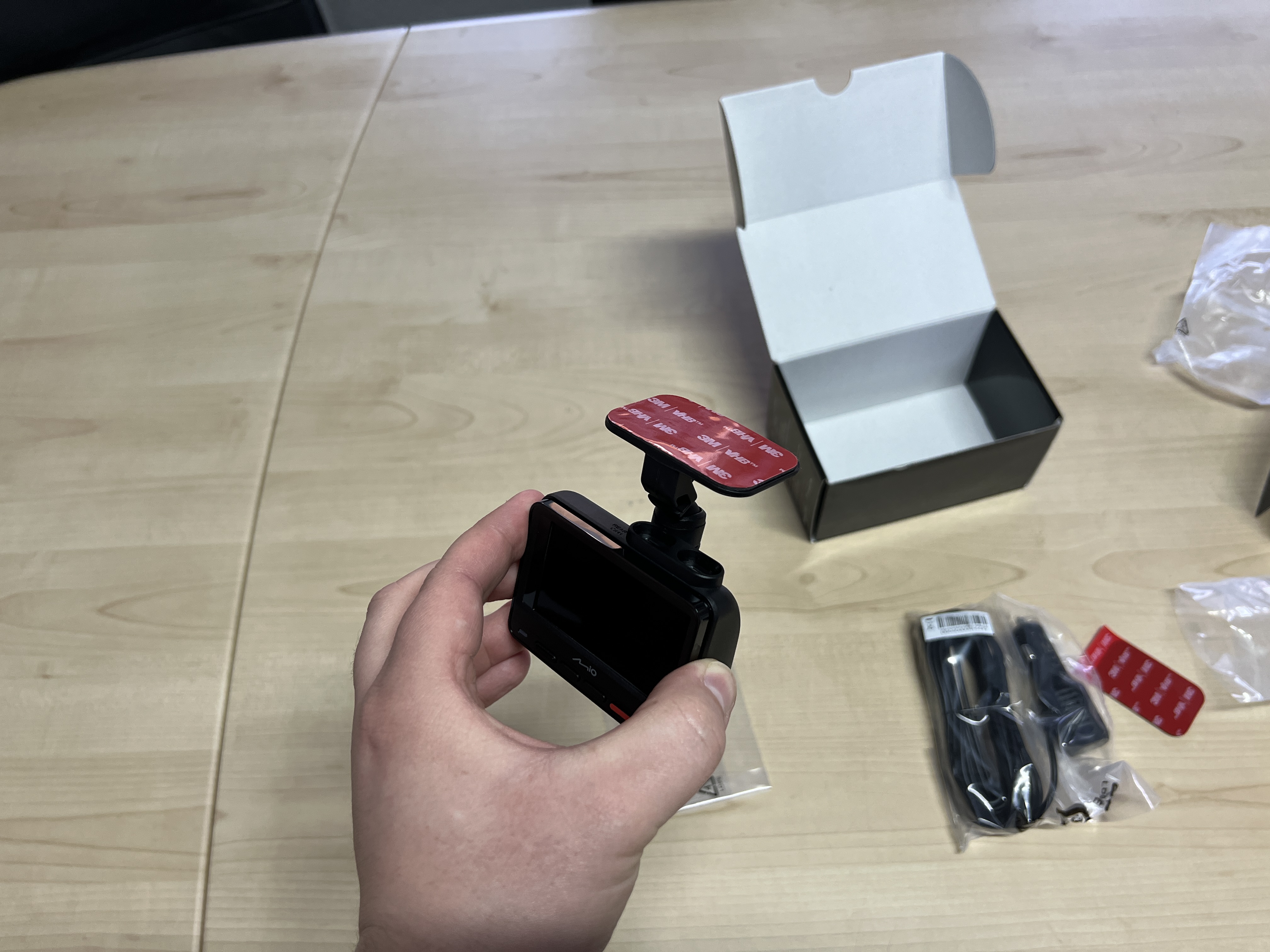 Camera se monteaza pe parbriz folosind dublu adeziv si are un suport care iti permite sa o reglezi dupa bunul plac. Prefer oricand o ventuza pentru ca o poti da jos oricand. Am ventuza pe masina din 2017 si o folosesc la toate camerele Mio pe care le testez. Deci rezista.