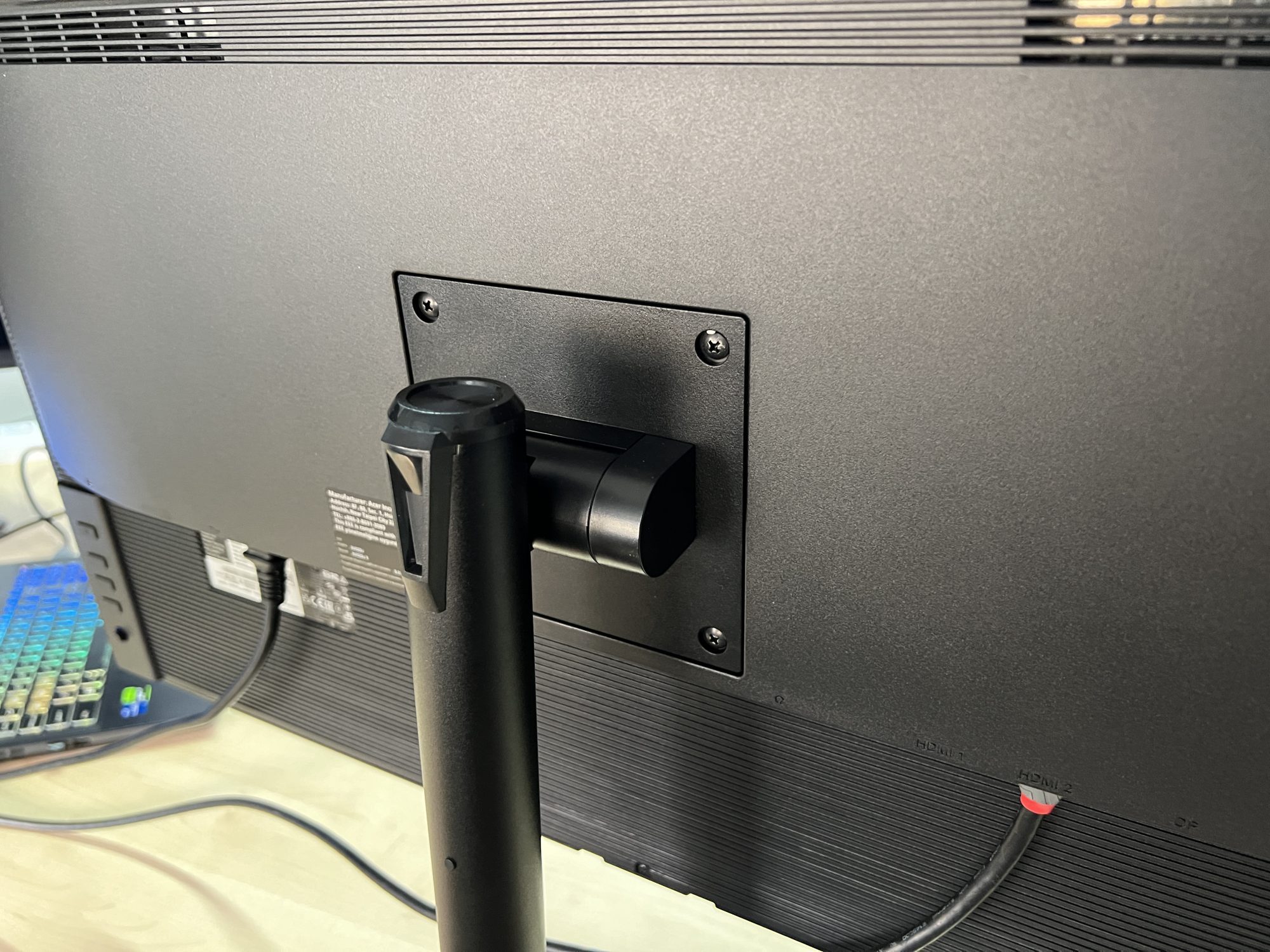 Se regleaza pe inaltime foarte usor, se inclina si se poate monta pe un suport VESA 100×100. Butoanele de meniu sunt pe laterala dreapta bagate in spate si trebuie sa stai cu mana dupa monitor si sa bibilesti pe acolo.