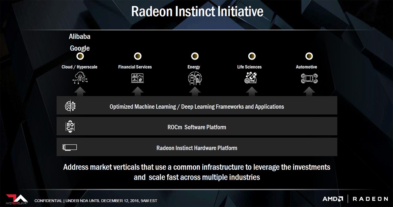 Mi6 are o putere de calcul de 5.7 TFLOPS, consum sub 150W, are racire pasiva si are la baza GPU-ul Polaris regasit si in RX 480. Mi8 este mai mica in dimensiuni, dar are o putere de 8.2 TFLOPS. Se zvoneste ca ar fi chiar Fury Nano sub alt nume. Iar ultima, Mi25, este surpriza cea mare, avand la baza Vega 10. Aceasta placa are un consum sub 300W, o putere de 25 TFLOPS, doua instructiuni cu virgula si memorie HBM2.
