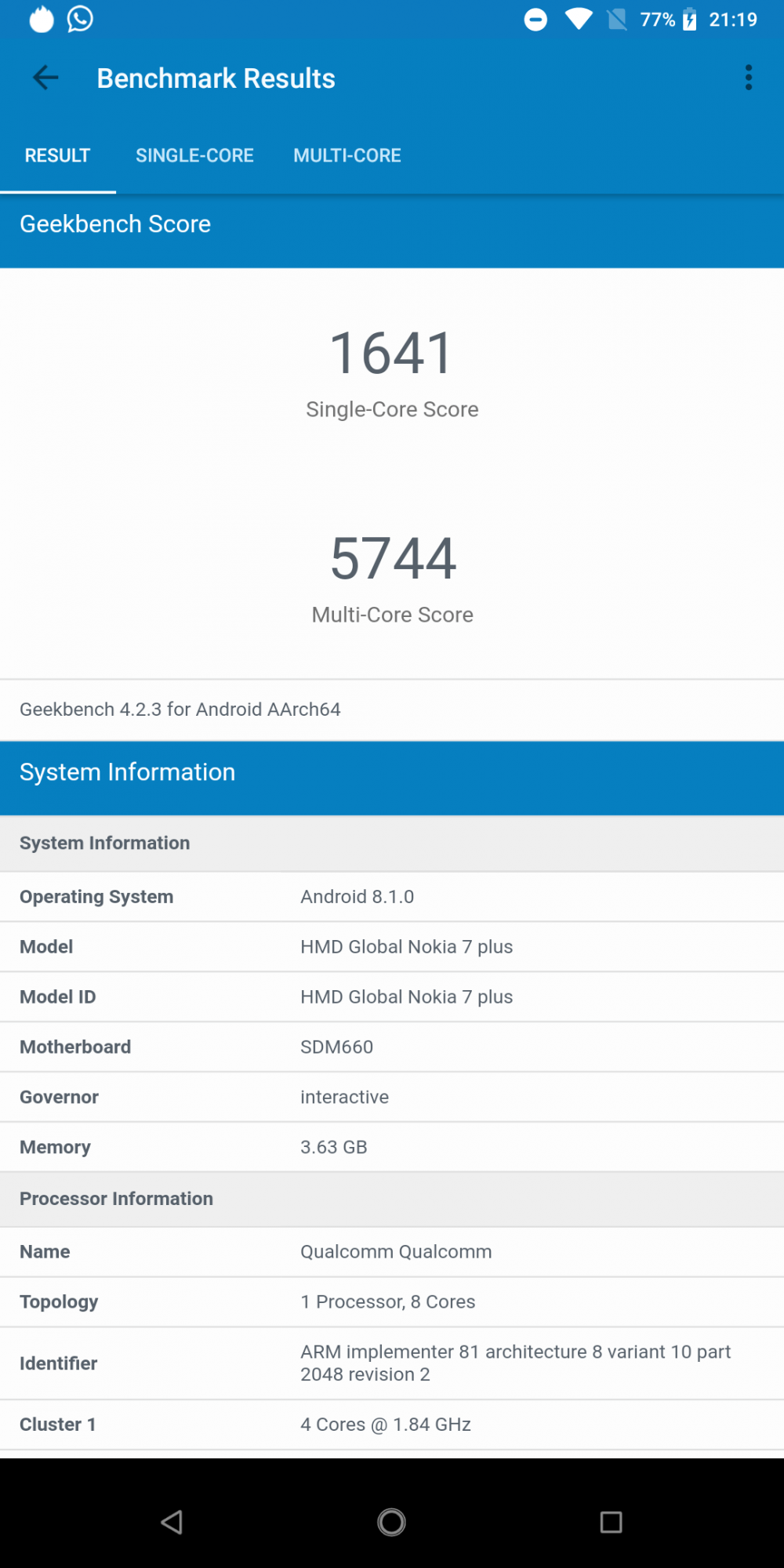 - Procesor: Qualcomm Snapdragon 660 ( octa-core 4 x 2.2Ghz Cortex A53 & 4 x 1.84Ghz)