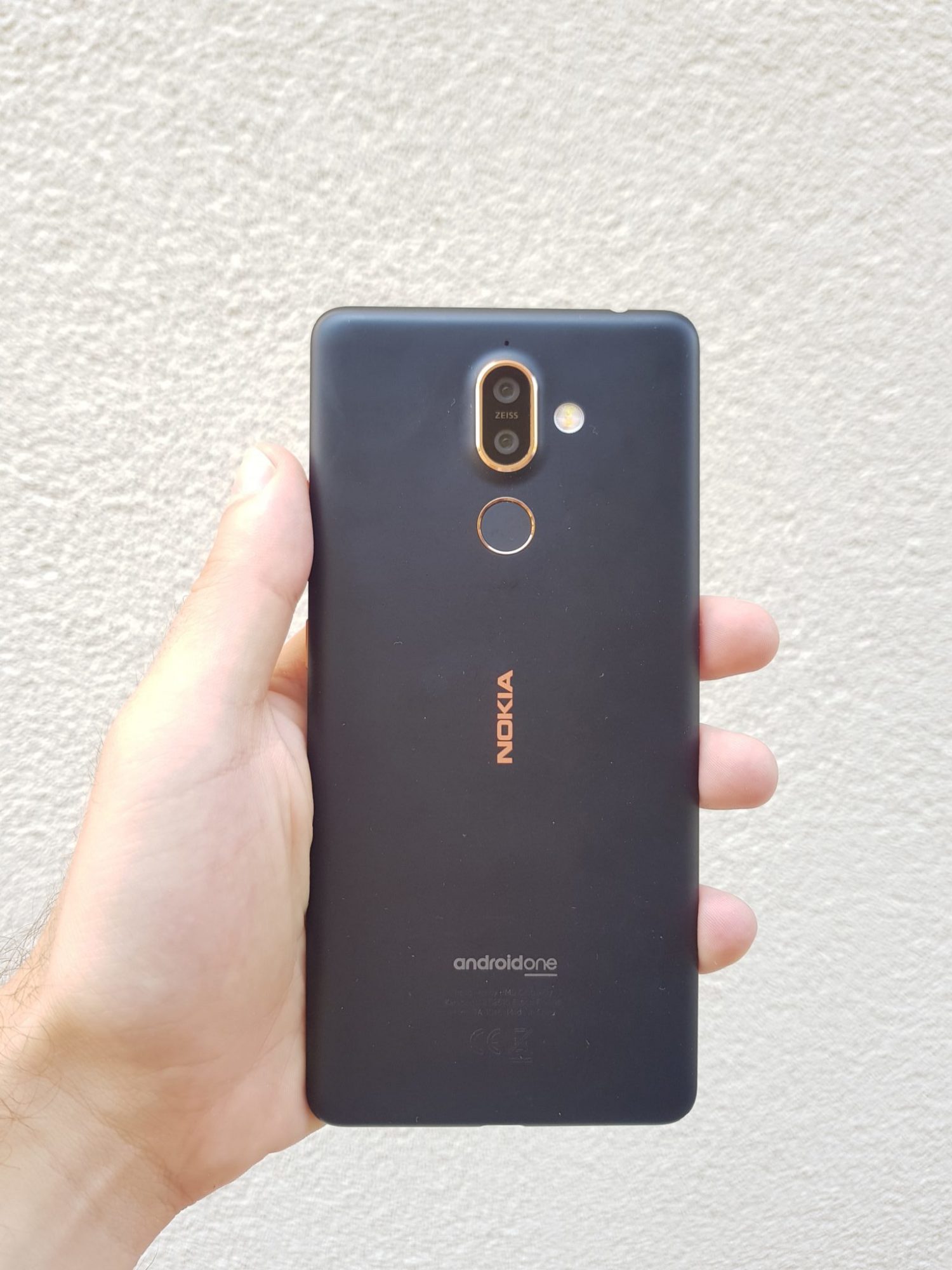 Design. 7 Plus este primul telefon Nokia cu design modern si display 18:9. Privit frontal mi se pare ca aduce a Pixel 2 XL, deci nu are cele mai mici bezels dar nici nu sunt deranjante. Cele doua camere foto de pe spate sunt pozitionate pe mijloc iar sub ele gasim senzorul de amprenta. Pastreaza aceiasi insertie de rama de cupru precum 6.1 si ii ofera si in acest caz un aspect elegant. Constructia este demna de un terminal din clasa premium si sincer nu am de ce sa ma plang. Spatele a fost imbracat intr-un cauciuc subtire care il ajuta la prindere si ofera un sentiment foarte placut la atingere.