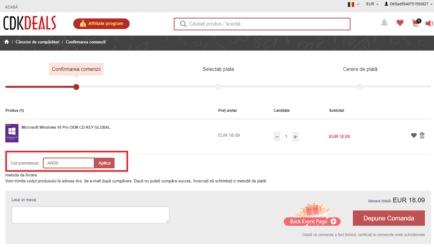 Apropo, trebuie sa va faceti cont cand adaugati un produs in cos. Puteti da log in cu Facebook ca sa nu va mai complicati. Eu asa fac. Reducerea se aplica imediat si trebuie doar sa plasati comanda. Dupa cum se vede au implementat si limba romana ca sa va fie mai usor. Asta inseamna ca licentele se vand bine la noi in tara daca au depus acest efort.