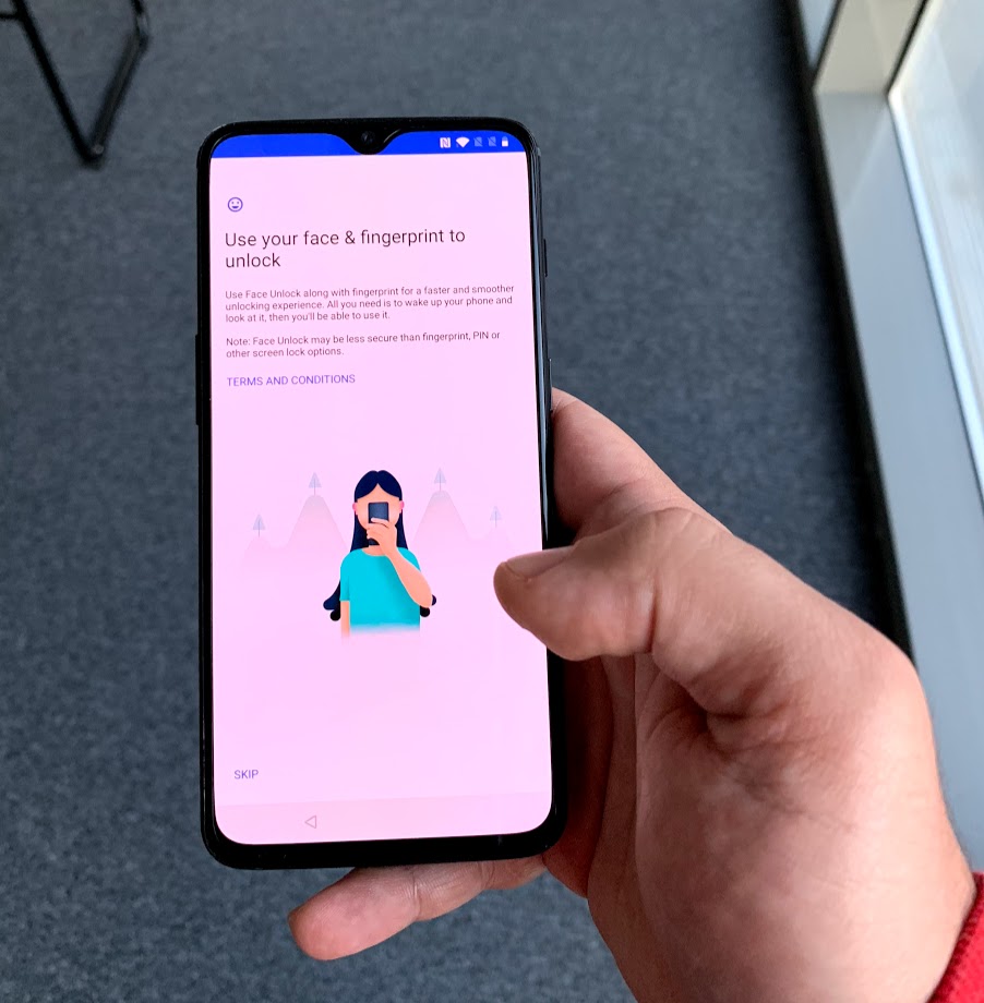 Constructie. OnePlus 6T se simte foarte bine in mana. Se vede ca e construit bine, pare solid si bine inchegat. Este un telefon mare, destul de lung, dar nu foarte lat, asa ca il poti tine in siguranta cu o mana. Problema apare atunci cand vrei sa ajungi in partea de sus a ecranului, daca n-ai maini suficient de mari.