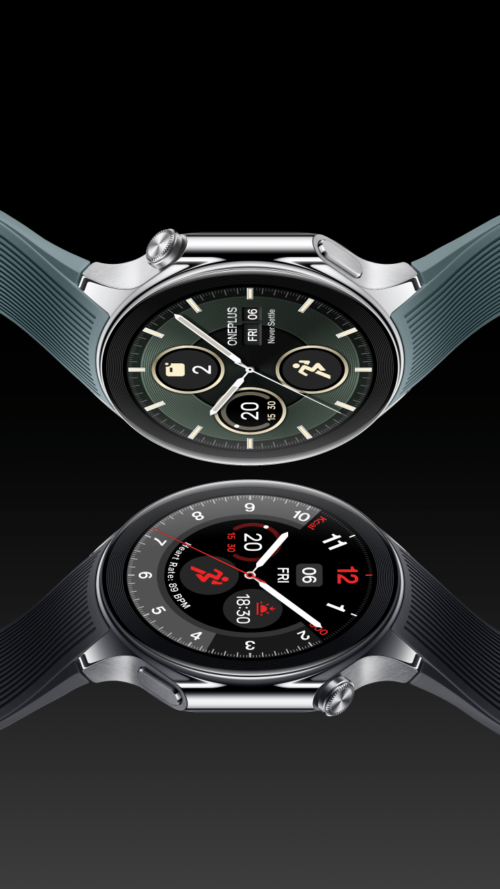 Designul OnePlus Watch 2 se îmbină perfect cu seria OnePlus 12, având o carcasă rotundă și un ecran protejat cu cristal de safir 2.5D, conferind rezistență la zgârieturi fără a compromite claritatea. Fabricat din oțel inoxidabil și certificat conform standardului militar american MIL-STD-810H, OnePlus Watch 2 este rezistent la condiții dificile și stres ambiental, fiind protejat și împotriva apei conform standardului IP68 și ratingului de rezistență la apă de 5ATM, asigurând o performanță excelentă în orice situație, de la plajă la înot sau în deșert.