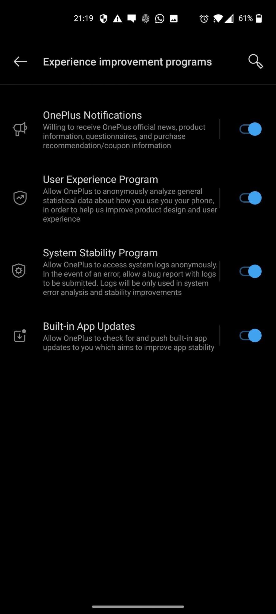Cât am folosit telefonul, am primit și o actualizare OTA pentru update la Android Security Patch 2020.12. După cum spuneam, îmi pare rău că nu am putut testa Beta Android 11.