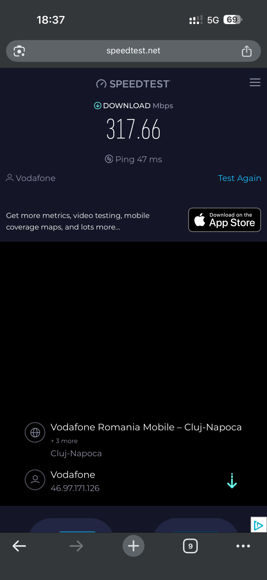 Este la modă să criticăm operatorii mari pentru clauze ascunse sau plafoane de viteză, și da, este adevărat că Vodafone Easy poate avea limitări contractuale sau de prioritizare în momentele de congestie extremă. Dar să fim serioși: când „limitarea” ta înseamnă să prinzi peste 300 Mbps într-o zi obișnuită, așa cum arată testul atașat, vorbim despre o falsă problemă. Acea „frână trasă” de care se tem puritanii tehnologiei este situată la o altitudine la care utilizatorul de rând nici nu ajunge să respire. Diferența dintre 175 Mbps și 317 Mbps nu este doar un număr pentru orgoliu, ci se traduce în secunde câștigate la fiecare încărcare de conținut greu, în apeluri video 4K fără niciun pic de pixelare și în capacitatea de a face hotspot pentru laptop fără să simți că te târăști pe internet.