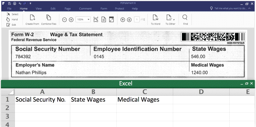 In primul rand va trebui sa incarcati o copie necompletata al fisierului vostru EXCEL sau Word in PDFelement. O data ce ati facut acest lucru, dati click pe fila cu formular si mai apoi pe pictograma sub formularul de recunoastere in bara de instrumente.