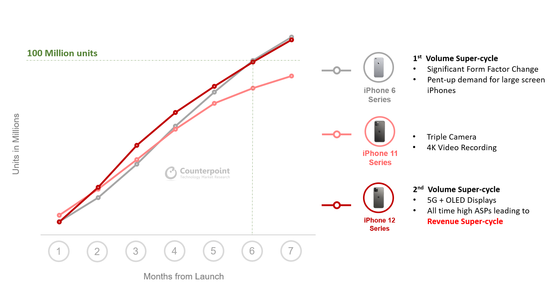 Peste 100 de milioane de unitati vandute in doar 7 luni. Cel mai vandut model este 12 Pro Max. Seria 11 a ajuns la 100 de milioane de unitati vandute in 9 luni, iar similar cu performanta reusita de seria 12 este doar seria 6 lansata in 2014.