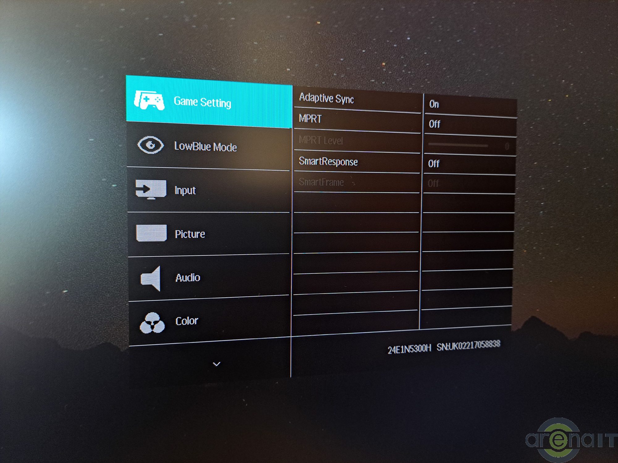 Diagonala ecranului este de 23.8inch si functioneaza la rezolutia FullHD 1920×1080. Ecranul este de tip IPS cu unghiuri generoase de vizualizare de 178grade. Rata de reimprospatare este de 75Hz. Timpul de raspuns GtG este de 4ms, iar MPRT de 1ms. Conform Philips suporta tehnologia AMD FreeSync dar eu nu am vazut pe nicaieri aceasta certificare.