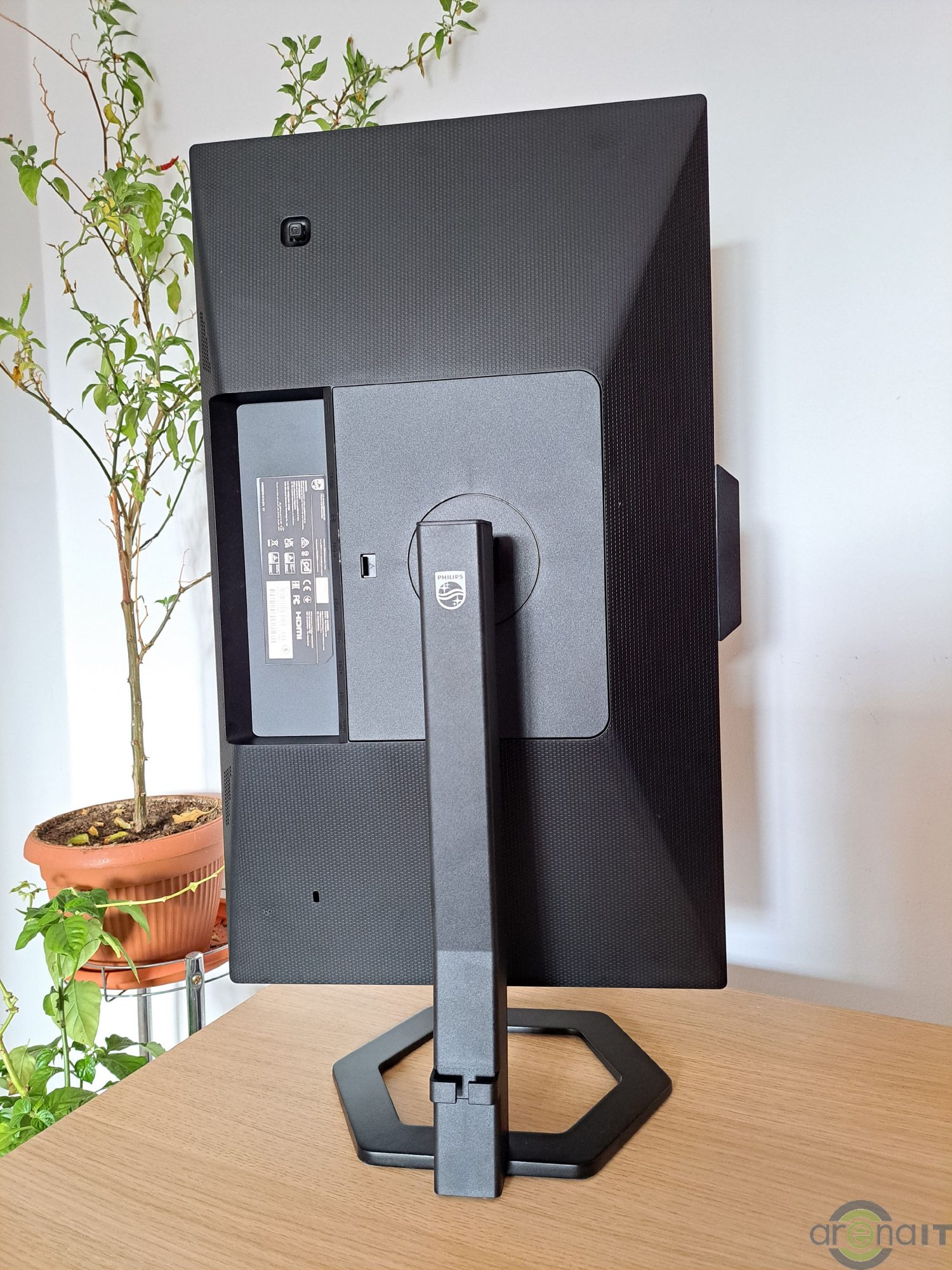 Va aduceti aminte cand va povesteam de monitorul de gaming de la Philips si cum il tradeaza aspectul clasic? Ei bine 24E1N5300 are in mare parte acelasi design. Talpa piciorului de sustinere este realizata din metal, iar stalpul este imbracat in plastic. Rama ecranului este la randul ei construita din plastic si are un singur buton fizic. Constructia ii permite reglaj pe inaltime, rotire sus-jos si incliatie. Nu ofera rotire pe laterale.