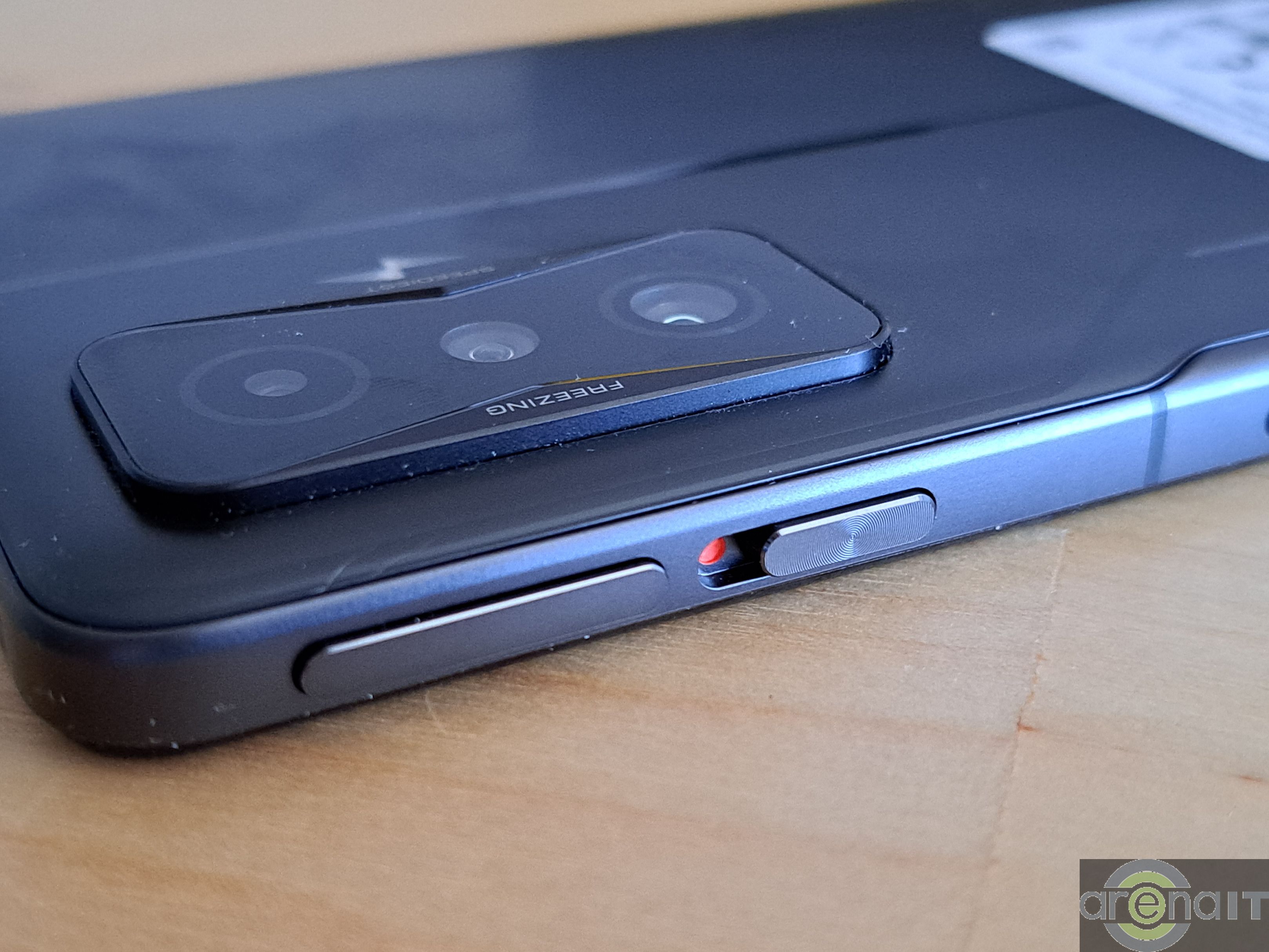 In cazul in care sufix-ul GT din nume nu era destul de clar, design-ul confirma inclinarea acestuia spre gaming. Comparativ cu alte telefoane dedicate gaming-ului, acesta are un design mai putin agresiv si e mai mult o combinatie intre un smartphone standard si unul exclusivist de gaming. Ecranul plat este protejat cu Gorilla Glass Victus, spatele este realizat din sticla, iar rama este din aluminiu. Materialele alese, alaturi de bateria de o capacitate buna l-au adus la o greutate de 210gr. Pe lateralul partii stangi avem un buton de volum usor subtiat la mijloc pentru a delimita cresterea volumului de scaderea volumului, iar pe partea dreapta avem aproape la mijloc butonul de deblocare cu senzorul de amprenta integrat, alaturi de cele doua triggere pop-up magnetice dedicate gaming-ului. Acestea pot fi mentinute active sau inactive prin intermediul a doua slidere pe care le puteti vedea in video-ul de mai jos. Mastile difuzoarelor asezate simetric in partea de sus si jos a telefonului aduc aminte de gurile de aerisire intalnite pe masinile sport. Mie personal mi se par inspirate din modelul Dodge Viper SRT 10. Insula camerei foto dreptunghica este asezata in picioare pe spatele telefonului si pe langa cei trei senzori foto ascunde si un LED RGB pentru notificari.
