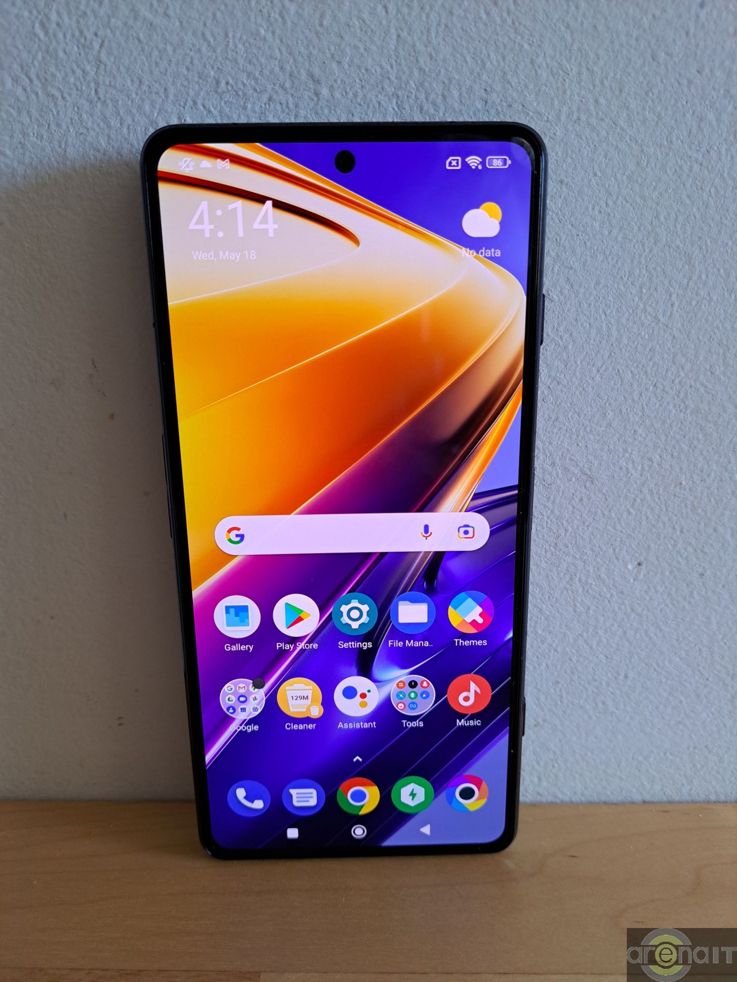 Android 12 cu MIUI 13 si interfata Poco Launcher vin pe telefon direct scos din cutie. Poco launcher nu este cu mult diferit de Miui launcher, iar intreaga interfata a telefonului va este familiara daca ati mai folosit un telefon din familia Xiaomi in ultimii ani. Interfata permite o varietate de personalizari si ajustari dupa bunul plac al utilizatorului. Cele doua triggere de gaming pot fi utilizate ca si scurtaturi pentru diverse aplicatii, iar LED-ul RGB de notificari aflat in insula camerei foto la randul sau poate fi personalizat. Always-on-display este prezent la randul sau.