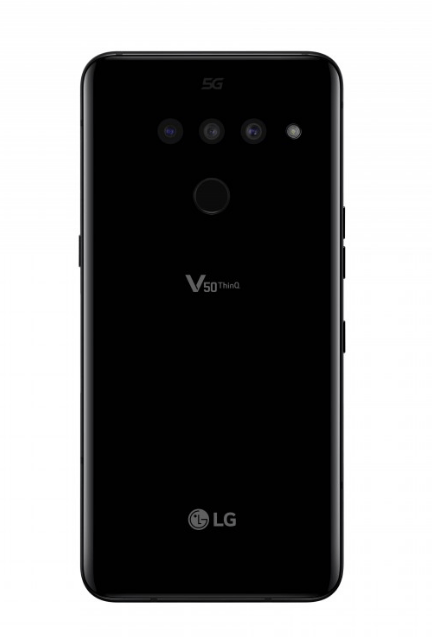 LG V50 ThinQ 5G va fi primul telefon produs de LG care va suporta tehnologia 5G. Cand vine vorba de aspect, telefonul poate fi usor confundat cu V40 ThinQ. In afara de 5G, V50 ThinQ nu aduce nimic revolutionar- avem un display de 6.4 inch cu o rezolutie de 3120×1440, panou OLED FullVision display. Frontal prezinta notch-ul, care ascunde doua camere foto: senzorul principal de 8Mp si cel secundar de 5 Mp pentru selfie-uri wide-angle si posibilitate deblocare faciala. Senzorul de amprenta a ramas clasic, pe spatele telefonului, alaturi de modulul cu cele trei camere foto: un senzor de 12MP principal, inca unul de 12MP telefoto si unul de 16MP pentru poze ultra-wide. Avem difuzoare stereo, o baterie de 4000mAh, 32-bit Hi-Fi Quad DAC pentru sunet de calitate si la fel ca G7, este certificat MIL-STD 810G – adica foarte durabil. Avem jack de casti, suport card microSD, Snapdragon 855 si 6GB Ram.