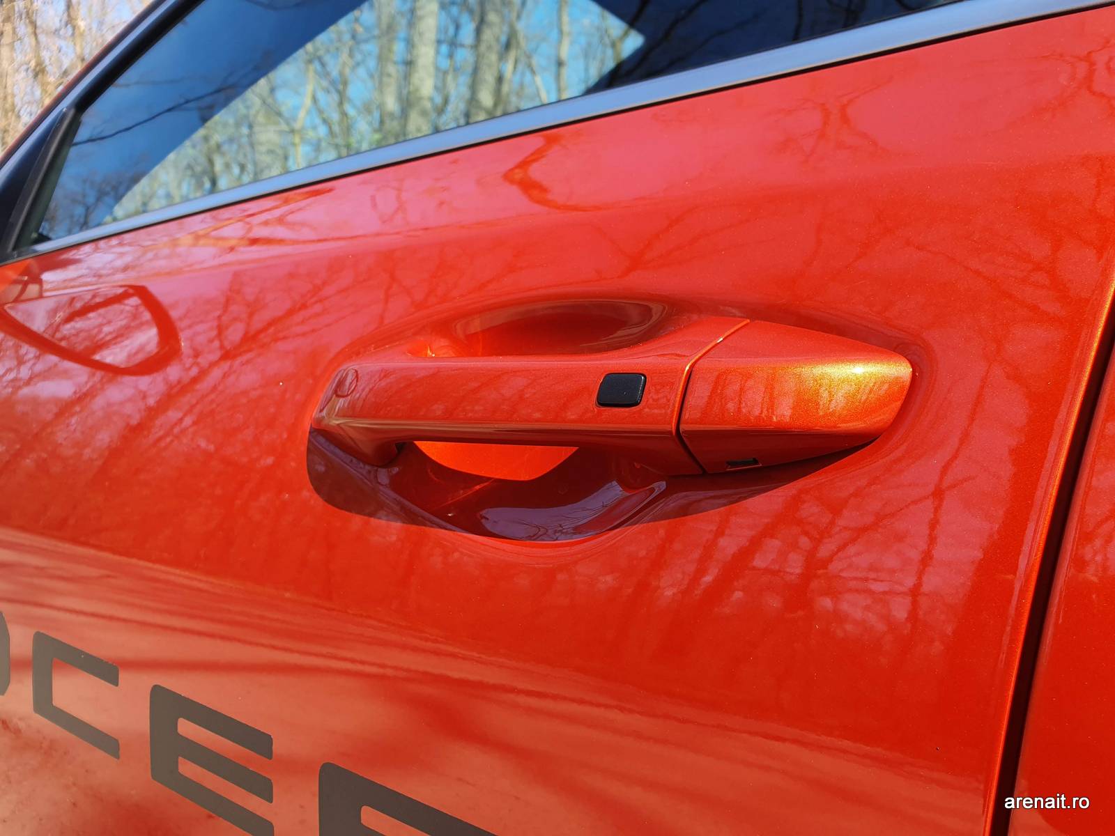 In spate avem doua evacuari sport care se aud in permanenta. Mai mult, avem si un mod „Sport” care deschide niste clapete in tobele finale si astfel acestea produc un sunet si mai gros. Tobele sport sunt interesante, insa as fi apreciat si un mod „Silent”, care sa-ti permita ca la drum lung sa opresti aproape de tot zgomotul, mai ales ca masina e una bine antifonata. La anumite turatii, chiar si la drum lung si mers constant, zgomotul esapamentului poate deveni suparator.