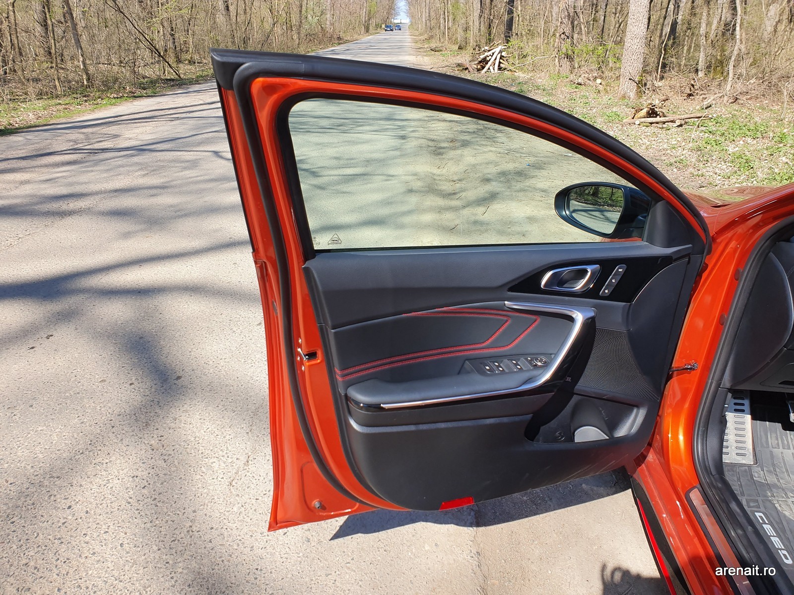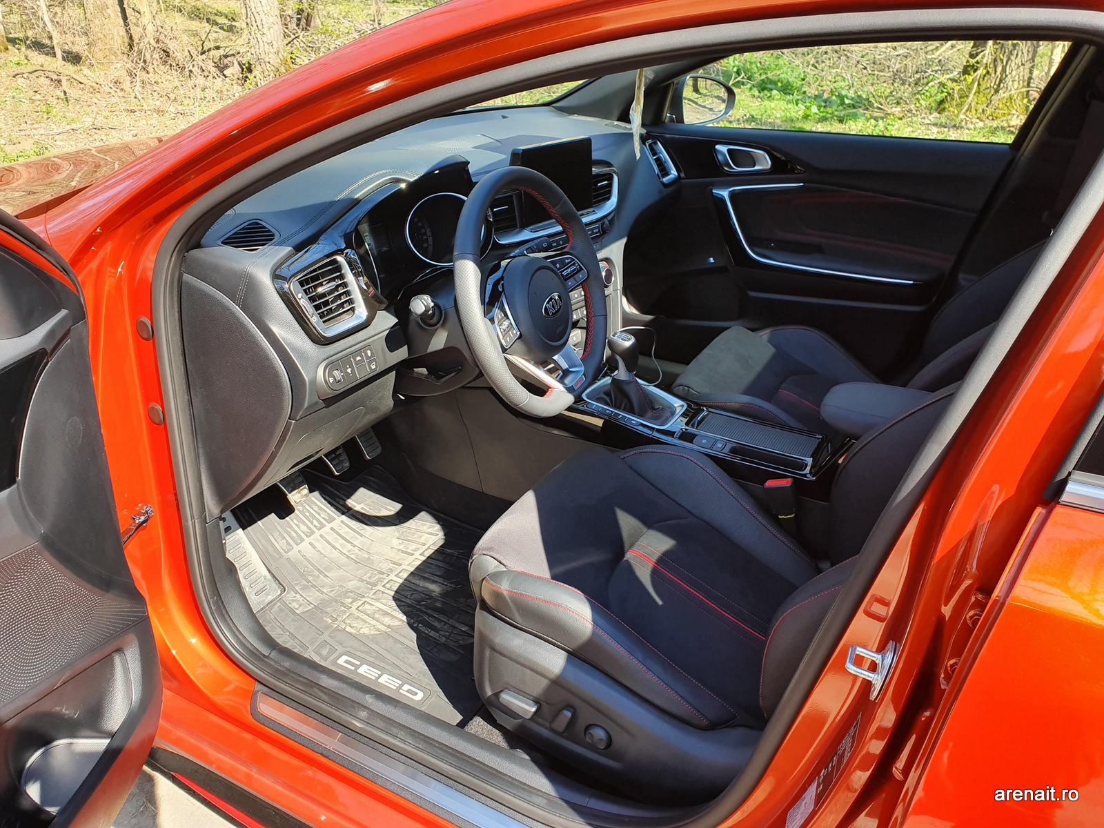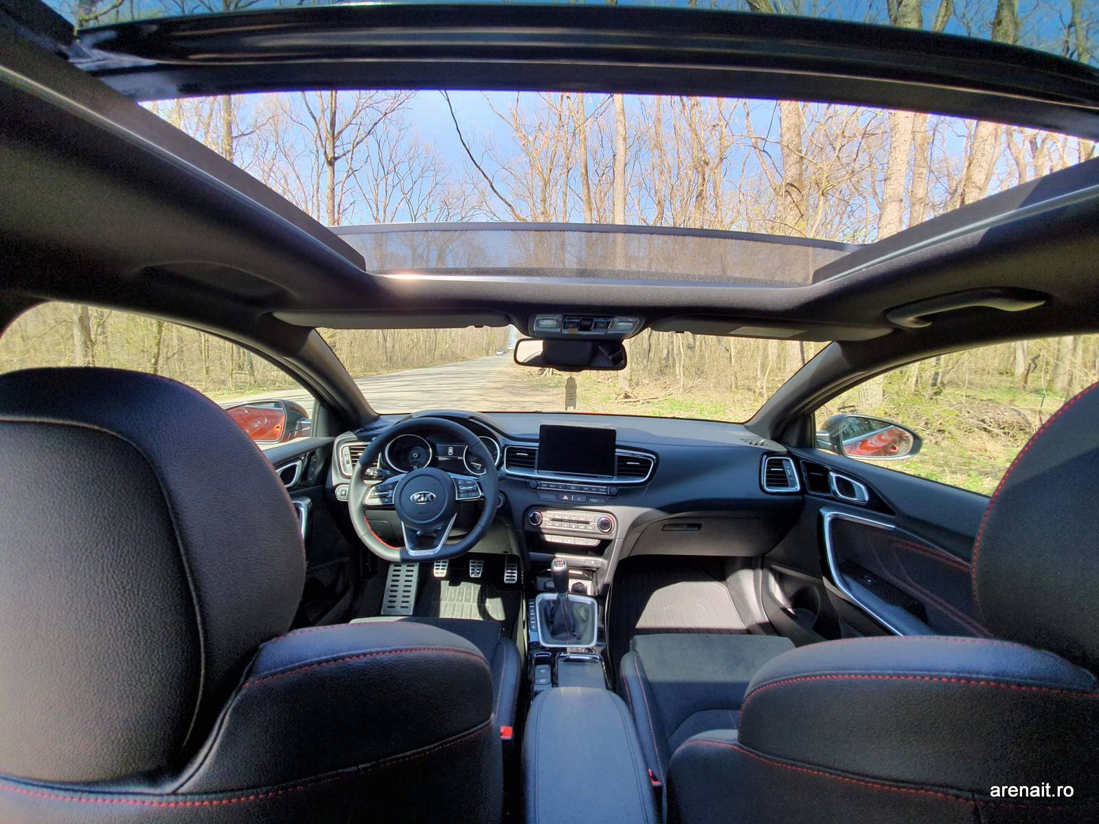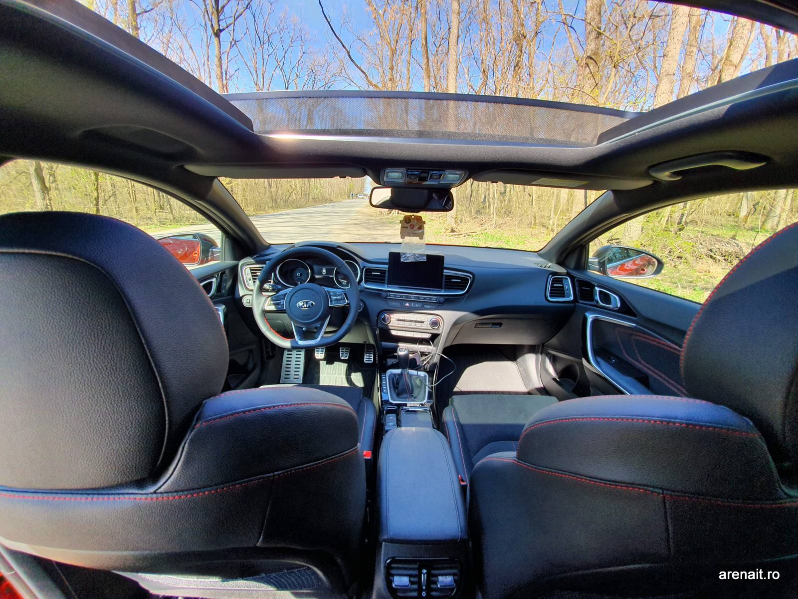 Dotari. Kia ProCeed GT este o masina foarte dotata si pe care poti pune aproape orice. Modelului testat de mine ii lipseau doar doua optionale la care m-am putut gandi: alerta de unghi mort si Adaptive Cruise Control. Ambele dotari se pot pune pe ea, doar ca pentru ACC se poate opta doar pe modelul cu cutie automata, iar noi am avut o cutie manuala.