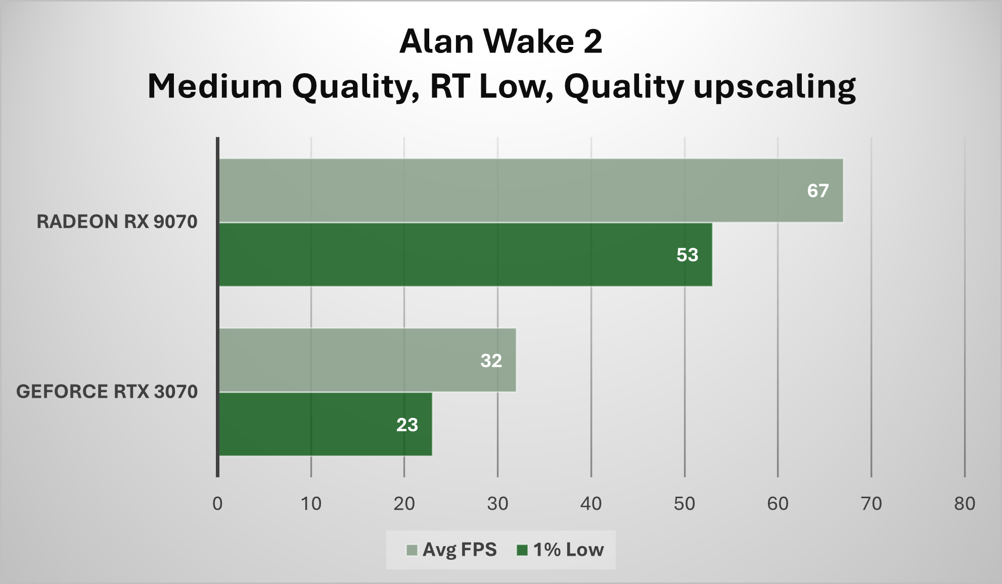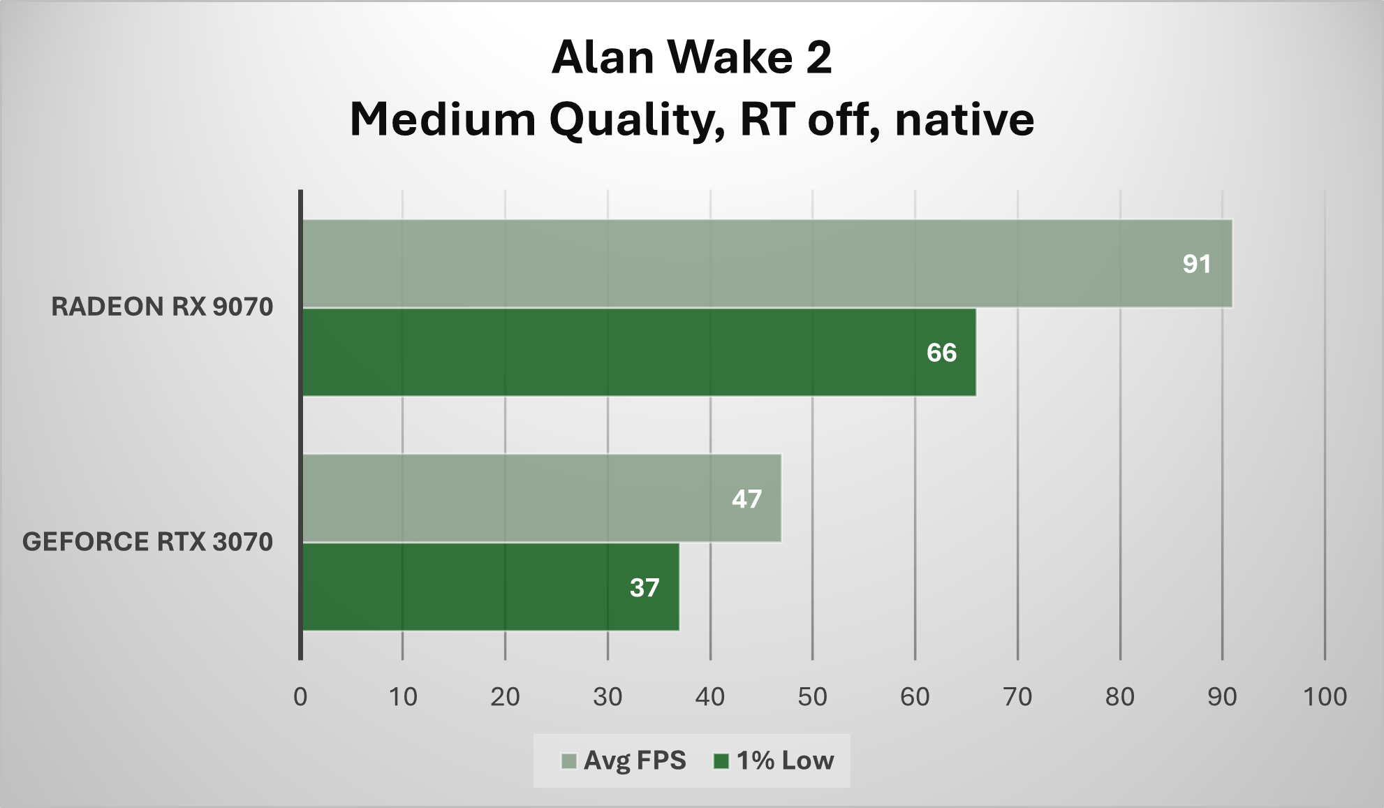 Observatii: Alan Wake 2 este unul dintre puținele jocuri unde ray tracing aduce rezultate vizibile impresionante. Pe RX 9070 nu merită activat deoarece implica activarea FSR 3.1, care la fel ca in cazul Stalker 2 sau Black Myth arata rău. Alan Wake 2 este un titlu sponsorizat de Nvidia.