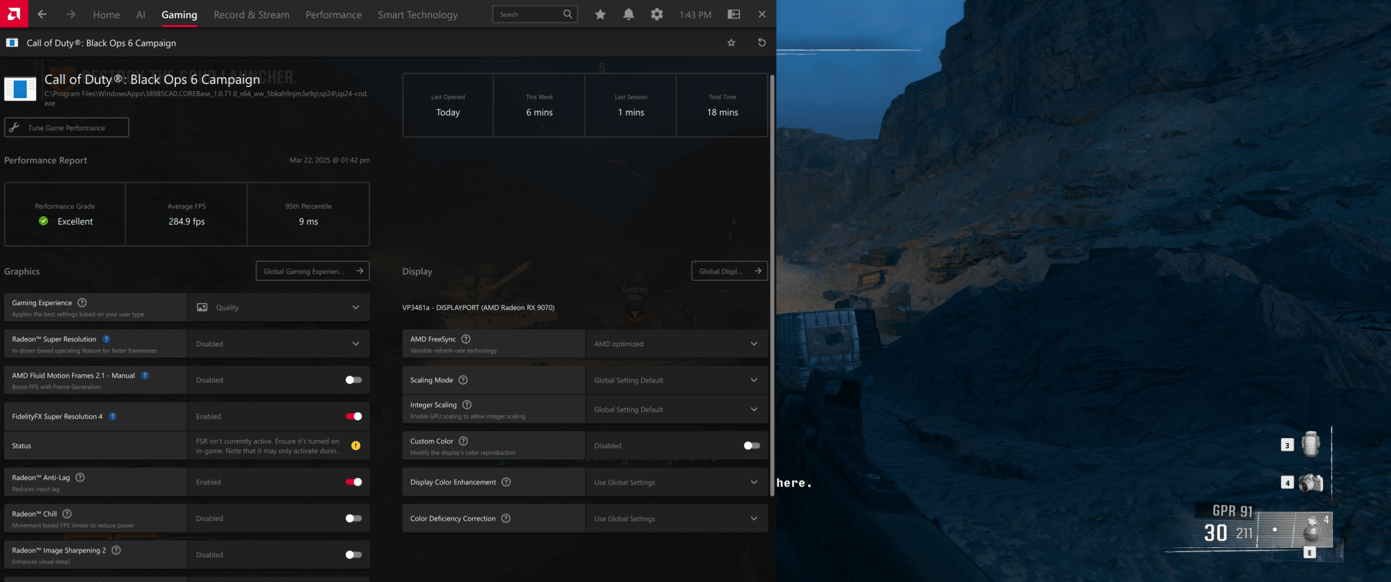Urăsc software-ul modern începând cu Windows 11. La această listă se pot adăuga tehnologiile de upscaling. FSR 4 este disponibil din ziua lansării într-o serie de jocuri, dar în nici care opțiunea nu e prezentă în meniu. E nevoie să fie aplicată manual din overlay. La fel este momentan si in cazul Nvidia cu DLSS4. In Call of Duty Black Ops 6 versiunea de pe Game Pass spre exemplu nu am reușit să o pornesc deși e suportată oficial.