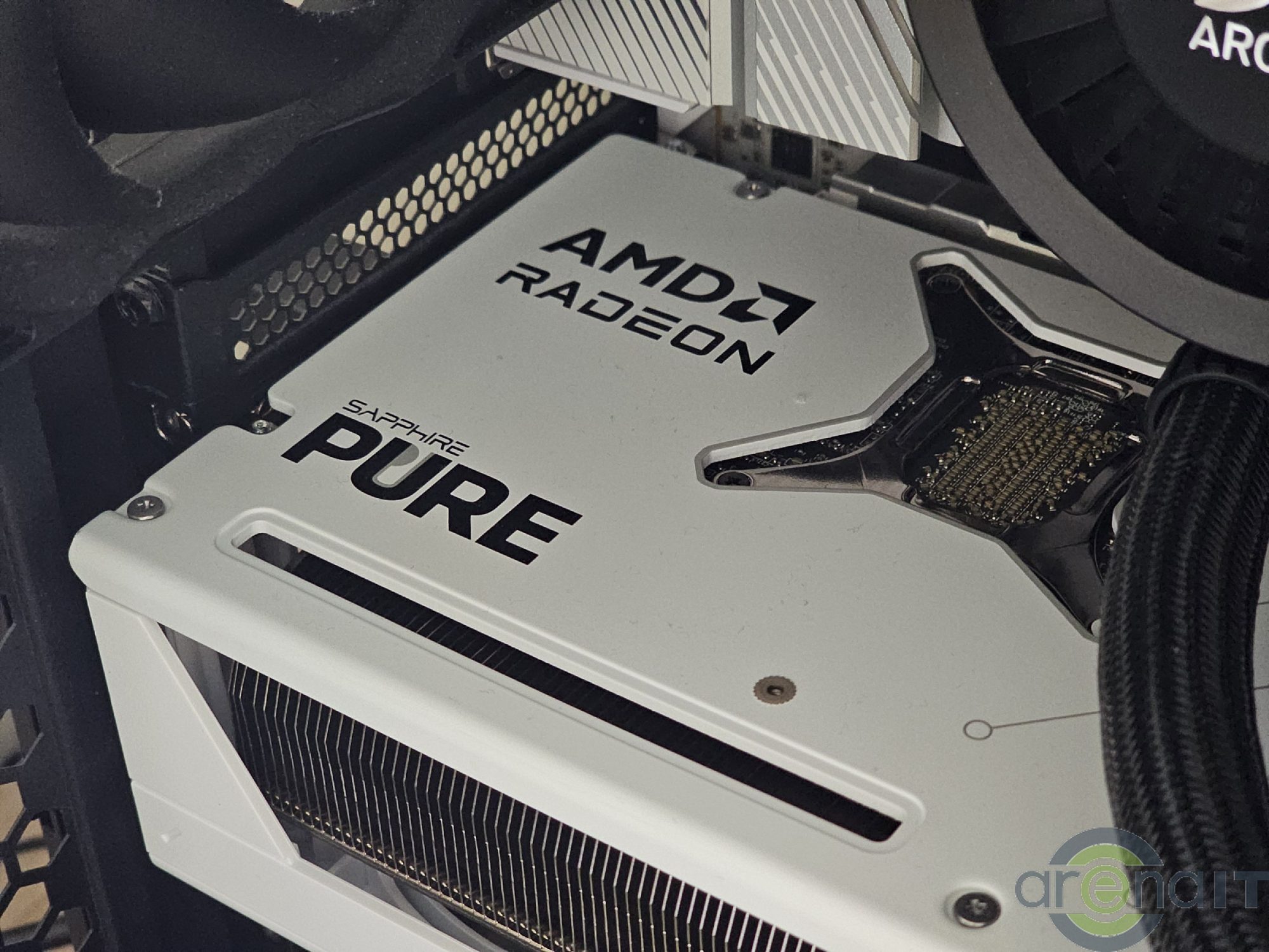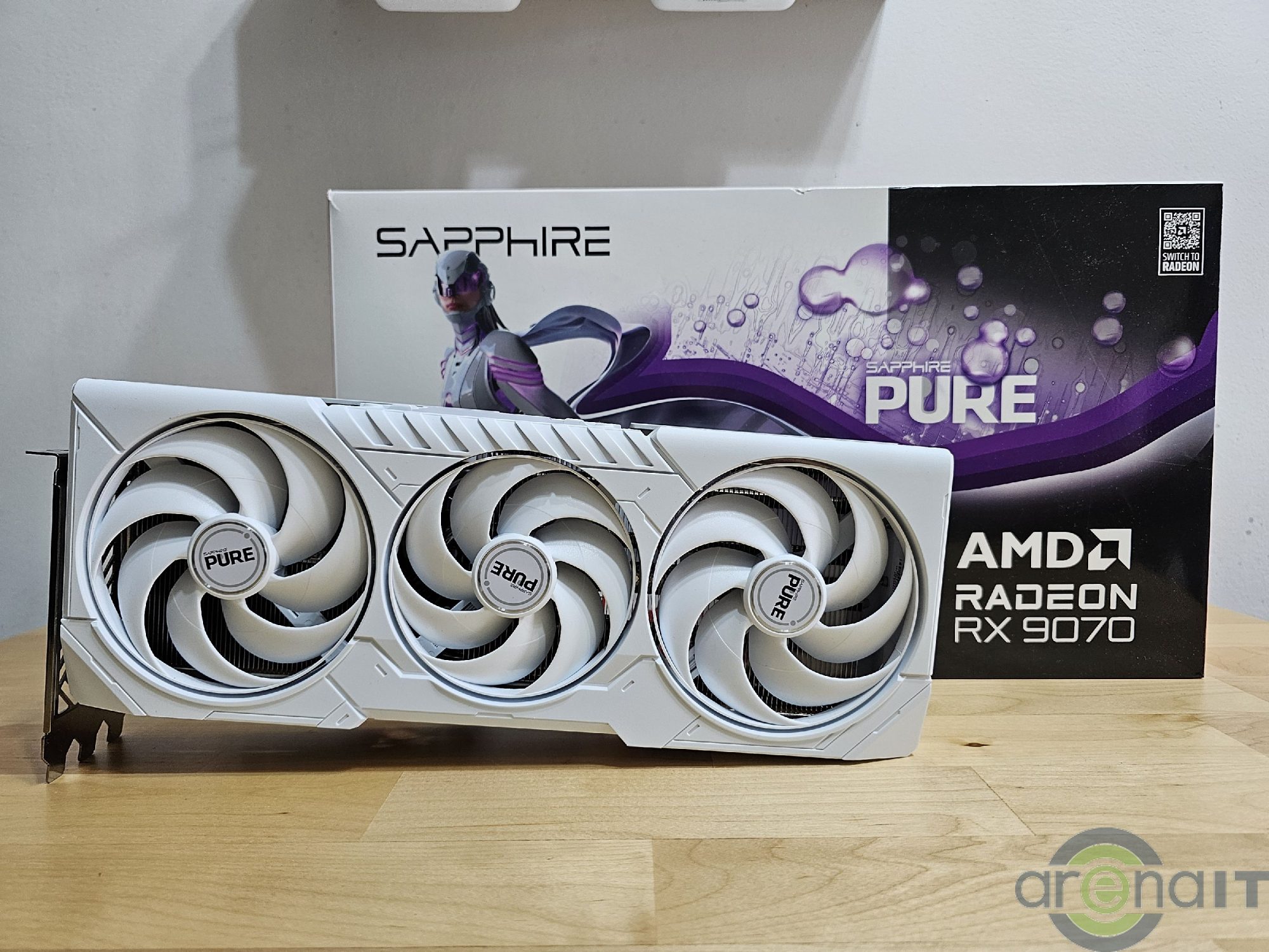 Am ales un AMD Radeon 9070 de la Sapphire, varianta Pure cu OC. Trebuie să recunosc că nu mă așteptam să arate așa bine combinația alb-negru.