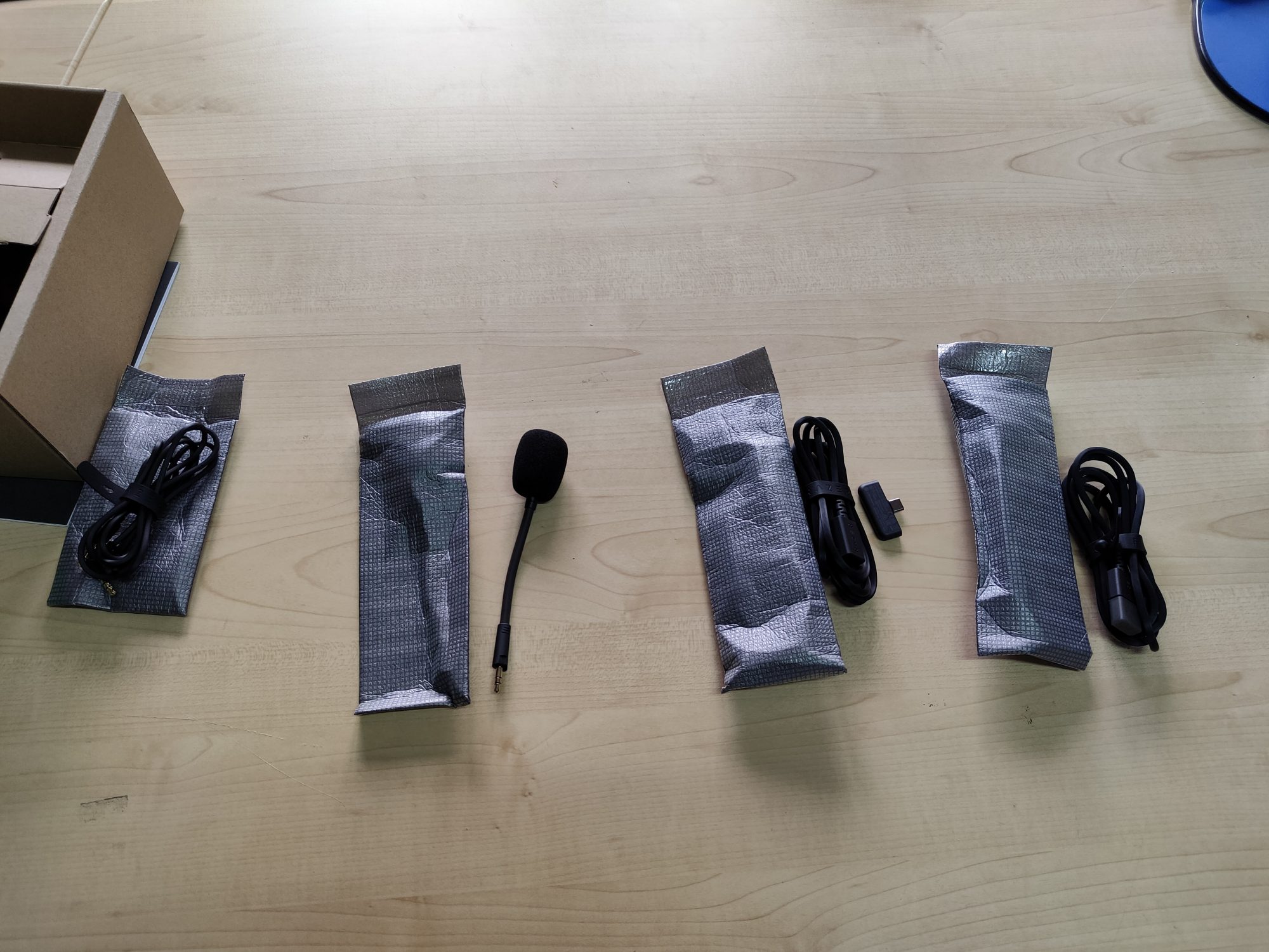 In pachet vin cu o suita de cabluri interesanta: primesti jack audio, cablu USB Type C, USB normal si un dongle pe care sa-l folosesti sa te conectezi la orice platforma.