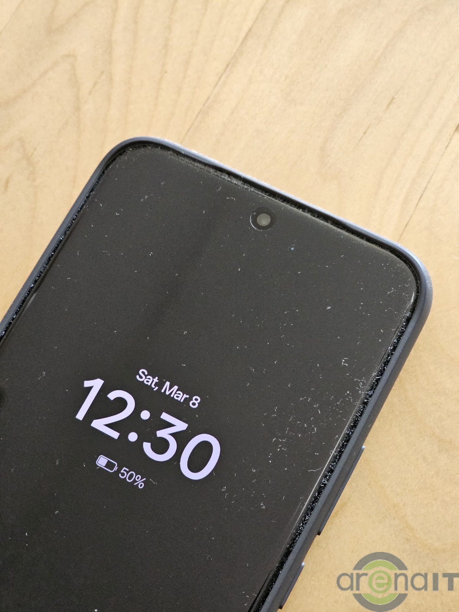 Ecranul este protejat cu Corning Gorilla Glass 7i si atat rama cat si spatele sunt realizate din plastic insa dupa cum spuneam si mai sus, reuseste sa te pacaleasca la primul contact.